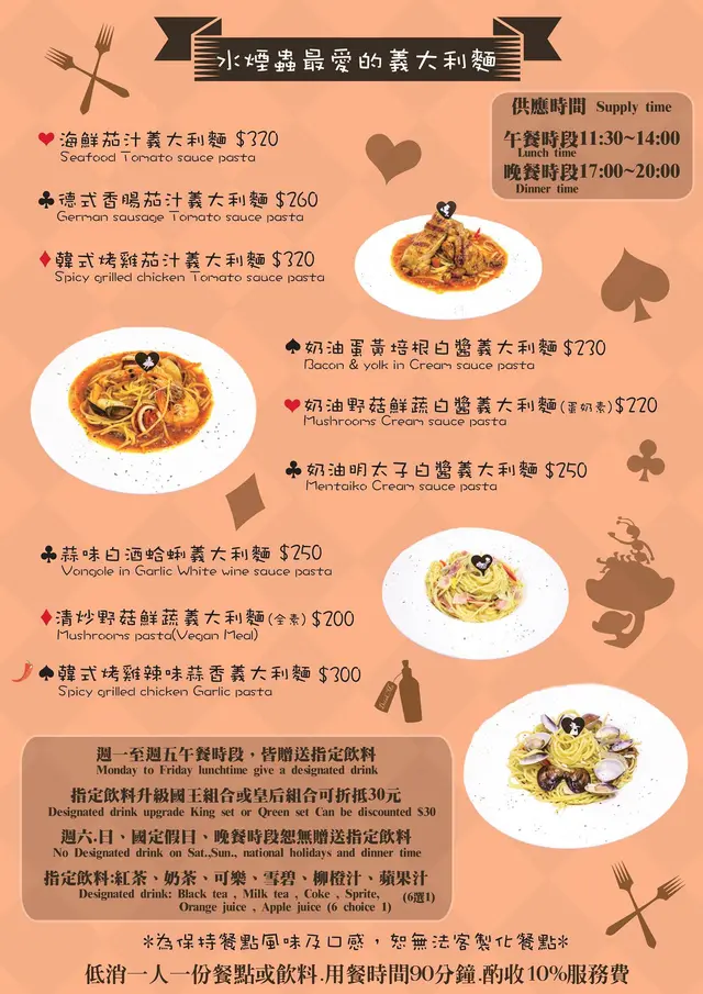 來自愛麗絲 (台北) 網址: https://s.openrice.com/cHRSm02zQy0W0 地址: 台北中正區延平南路111號2樓 電話: +886 0223110210