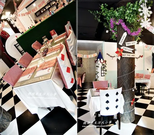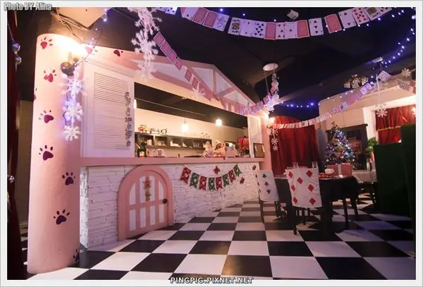 鄰近台北中山堂的Alice Is Coming來自愛麗絲是一家以愛麗絲夢遊仙境為主軸的主題餐廳,門口的撲克牌士兵及店裡的草叢迷宮讓人彷彿置身在童話故事裡,而Alice Is Coming更不定期與手遊及輕小說合作,推出一道道聯名的下午茶甜點Alice Is Coming來自愛麗絲就位在西門町捷運「西門站」3號出口旁的全家便利商二樓,距離來西門町必吃的阿宗麵線、天天利美食坊相當的當近,開車前來可將車子停在1h/$40元的嘟嘟房中山堂,走路過來僅三分鐘的距離。Alice Is Coming來自愛麗絲環境如果是走在騎樓底下的人可能比較找不太到餐廳,看到全家旁邊有一扇咖啡色的木門就是Alice Is Coming來自愛麗絲的大門。門口邊邊貼上撲克牌營造童話故事中的場景畫面,讓喜愛愛麗絲夢遊仙境這個童話故事的我感到相當新奇。印入眼簾迎接大家的是愛麗絲大型壁掛裝飾及故事中裡的草叢迷宮,看著這綠色草叢好像白兔先生隨時會出來跟大家坐在草叢裡喝下午茶似的。最特別的則是這可愛的咖啡杯空間,想要在童趣可愛超適合拿來上傳IG打卡拍照的咖啡杯裡用餐建議先行訂位,不然人潮多的話可是坐不到的唷!常態菜單則是有輕食三明治、咖喱飯、義大利麵這三種鹹食正餐,價格落在$200~$320之間,其中咖喱飯可以免費續加一次咖哩醬,胃口比較好的人可+$30歐姆蛋或是+$10白飯。三明治及咖哩派對套餐組合?國王組合:+$130可$160元飲品任選一杯。?皇后組合:+$180可$160元飲品任選一杯+當日特選甜品。熔岩咖哩牛肉 $260米飯上頭的牛肉片口感扎實沒有什麼肉汁,建議沾著使用洋蔥、蘿蔔、蘋果、巧克力所熬煮得清香微甜咖哩醬會比較濕潤。只要點咖喱飯都可以免費續一次咖哩醬,咖哩醬口味清甜不會太重,就算單吃也不是問題。辣味蒜香烤雞義大利麵 $320韓式辣味的蒜香烤雞醃漬入味,肉質頗嫩不乾柴,微辣的口感搭配使用胡椒、蒜頭與辣椒清炒的義大利麵很剛好,麵條也不會過軟,吃之前建議先將麵條攪拌均勻避免覺得較乾唷。活動限定的餐點都會插上遊戲角色的人物圖片。如果想吃但又不敢吃辣,辣味蒜香烤雞義大利麵也可以客製化做成不辣的口味!貓妖-月鈴 $160顏色超美的貓妖-月鈴是以妖怪餐廳的角色來命名,口味是藍柑草莓可爾必思+香草冰淇淋,喝之前可以先吃點香味濃郁的明治香草冰淇淋,沒吃完攪拌均勻有點像草莓牛奶的味道,甜度不會太甜還滿好喝的~狼妖-木郎 $160藍色的狼妖-木郎藍柑橘可爾必思氣泡飲+香草冰淇淋,口味清爽有著微微的氣泡嗆感,喝起來還滿過癮的!Alice Is Coming來自愛麗絲有著多變的豐富餐點,加上童趣可愛的用餐環境非常適合親子家庭、姐妹聚會及情侶約會,搭配不定期的主題活動根本是手遊、輕小說愛好者的天堂!而且距離西門町這麼近,吃飽飯還可以到艋舺老街、剝皮寮、西本願寺逛逛來個西門町一日遊唷!…查看更多