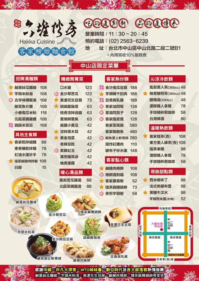 六堆伙房 中山店 (台北) 網址: https://s.openrice.com/cHRSm029ES400 地址: 台北中山區中山北路二段2號B1 電話: +886 +886225636239