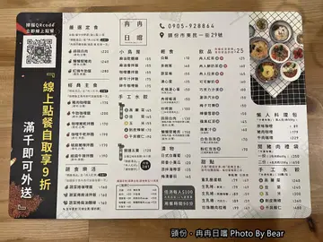 頭份.冉冉日嚐日常料理位在頭份尚順商圈上的東民一街上,有間日式文青風格的「冉冉日嚐」主要以販售定食、咖哩飯及手工水餃為主,也有飲品、甜點可選擇室內採日式木質風格的裝潢,且還有日式塌塌米的座位內用咖哩飯和定食都可免費加飯、加醬和加湯一次,整體份量讓人可吃很飽店內最大特色是有著超多的玩具公仔收藏,另外也有多款桌遊可以借來玩帶孩子來不擔心會無聊,可邊吃邊玩或吃飽再玩都可以日系文青風的環境,不管室內或室外都好拍,也適合網美們來拍一波冉冉日嚐_地理位置冉冉日嚐的位置就在頭份尚順廣場商圈裡在一整排的店家裡,有間外觀和一般店家不大一樣有著白色的外觀且有著日式簡約風格的門面,就是冉冉日嚐了冉冉日嚐_內部環境冉冉日嚐內部裝潢,延續著外觀給人的印象,走的是日式文青簡約風木質風的餐桌椅,有一般座位區也有需脫鞋才能坐上去的榻榻米座位座位數多為二~四人的桌椅,約莫有20個左右店內另一大特色,有為數不少的卡通公仔和可愛的裝飾還提供多款桌遊,不管大人小孩,在用餐以外時間也不會無聊純白的牆面上,也有不少可愛的裝飾和公仔因為點餐和候餐需要一點時間,所以尊和昕兄妹倆早已玩了起來     除了牆面上,最吸眼球的就是這地方了這裡是點餐的櫃檯和吧檯座位區這裡擺滿了琳瑯滿目的各式卡通公仔樣式真的是多到驚人,也會讓人看的眼花潦亂這樣,哈~其實還有很多,但游小熊只有拍一些放上來其它的就等大家有機會到現場欣賞好了   在走廊的兩旁也掛有不少小東西,像是毛巾、小方巾、掛勾、各式生活小物和鑰匙圈這些都是店家有在販售的,所以如果有喜歡的也可以自行洽詢店員喔冉冉日嚐_菜單菜單蠻精緻的,也將餐點分類的很清楚想吃什麼,直接找到該分類打開來看即可 一共將餐點分成了六大類,且還有冷凍食品可以選擇呢 冉冉日嚐_餐點 這天是特地來吃午餐的,但因為店裡也有甜點和飲料索性就連下午茶的份也一起點了「開運五寶(手工水餃)$120」因為懶的選口味,所以乾脆直接選綜合的開運五寶來嚐嚐除了水餃,還有精緻湯品、冉人紅茶、綜合漬物可以三選一我們選了一杯冉人紅茶來搭配著一起吃(註:瞧~那盛裝醬油的小碟子也太可愛了吧)名為開運五寶,故有五種不同顏色(口味)的水餃從店家的粉絲頁也查到不同顏色水餃各自代表什麼口味:黑皮(墨魚):剝皮辣椒白皮(原味):韭菜黃皮(胡蘿蔔):玉米綠皮(綠藻):高麗菜橘皮(蕃茄):蝦仁但這天盤子裡沒看到黑色的,所以剝皮辣椒是用更深的綠色水餃皮來代替水餃光就視覺上看起來就覺得很飽滿且紥實,而吃起來的口感確實是如此沒錯整體來說,五款水餃的調味上都不錯,單吃就有鹹度,或是沾點醬油吃也不錯「經典主食-豬肉咖哩飯$170(含精緻湯品或冉人紅茶二選一)」孩子們都愛吃咖哩飯,也點了一份豬肉咖哩飯來分食這道豬肉咖哩飯由溫體豬肉、時蔬和禮服蛋所組成咖哩醬汁的味道很溫順且不會辣,搭配上述食材一起吃很好吃咖哩系列若是在店裡內用的話,都可以免費加飯加醬一次喔「嚴選定食-蒜蒜白肉$220」一份咖哩飯怕吃不飽,所以還點了一份定食來吃定食是以木質托盤送上桌,看起來也一整個很有質感定食裡有白飯、當令炒時蔬、溏心蛋、小菜,精緻湯品和冉人紅茶二選一主食是淋上了特製醬油的蒜泥白肉,再搭配白飯和小菜一起吃很涮嘴  「巧克力生乳捲$79(點主食/定食可用$49加購)」吃完正餐,甜點當然也要來一份才行因為有點主食(定食)的關係,所以可以以優惠價來加購甜點選了巧克力生乳捲和珍珠糖肉桂捲兩款甜點來當這天的下午茶兩款甜點份量其實不大,有比一般市售來的小了些,但口味都不錯巧克力「珍珠糖肉桂捲$99(點主食/定食可用$69加購)」本以為孩子們可能不會幫忙吃肉桂捲的(因為之前點都不大愛吃)這回可能有珍珠糖的關係,甜味會將肉桂味稍稍蓋過去,所以也吃的很開心「冉人鮮奶茶$60(可折抵$25)」 &「冉人紅茶(FREE)(附餐飲料)」飲料只有點兩杯,一杯是主食附贈的紅茶,另一杯是換購的鮮奶茶紅茶味道還不錯,微甜且不會澀,所以單喝或搭配鮮奶都不錯 【後記】很喜歡冉冉日嚐這樣的可愛溫馨小店除了日式文青風格本來就是我的菜之外加上裡面還有這麼多的玩具小公仔讓本來就喜歡看動漫且有蒐集公仔的我們看的很開心另外還有多款桌遊可以玩,讓孩子們不會無聊販售的餐點除了有主餐,也有小食、甜點和飲料不管想吃飽或是想吃巧,或是想吃下午茶都有,真正美賣喔~查看更多