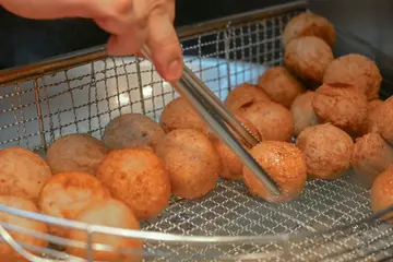 來寧夏夜市我不會錯過的就是劉芋仔蛋黃芋餅,在還沒得到米其林前就常買來吃,這次剛好經過就來買一下。劉芋仔蛋黃芋餅,從2018年起連續4年獲米其林必比登推薦,只賣蛋黃芋餅跟香酥芋丸這兩樣,看要吃蛋黃還是不要吃蛋黃兩種可選擇。劉芋仔蛋黃芋餅就在寧夏夜市內091攤位,看到排隊人潮跟著排就對了。蛋黃芋餅(鹹蛋黃+豬肉脯)$30跟香酥芋丸(純芋頭)$25,最低要買兩粒。買四顆以上每顆可以減免五元,好像相對比較划算些。店家會事先捏好一顆顆芋泥球,等等就直接下鍋油炸,看這一顆顆的芋泥球很療癒阿。炸好後的芋餅也會先蒞一下油,所以拿到手吃起來也不會太油膩。香酥芋丸是比較適合想單純吃芋泥的,個人偏好是有包餡的蛋黃芋餅,口感軟綿鬆軟又有芋頭香氣,裡面包的豬肉脯與鹹蛋黃,鹹鹹甜甜讓芋餅更有層次感,超級無敵加分,黨飯後小點心好適合喔。 …查看更多
