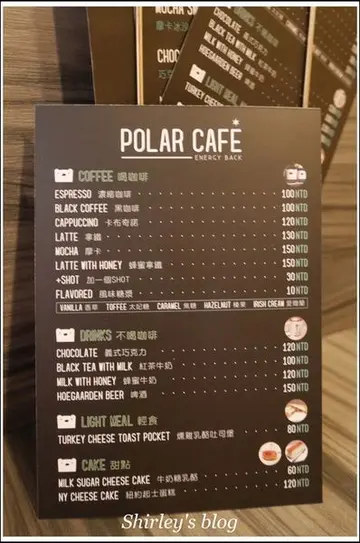 **歡迎光臨 萍萍的美食記錄網**無意間在臉書看到有朋友按過這間店的讚,看到當下覺得天呀好可愛唷,我一定要去。 ***店家資訊***Polar Cafe電話:02-2721-1520店址:台北市大安區忠孝東路四段205巷29弄7號營業時間:下午2:00 ~ 晚上10:00和友人來到東區吃午餐,吃完理所當然是要喝杯咖啡聊個天。一直沒忘記這家店,又不時再臉書看到廣告。所以,終於來了 ~ 開心!寶拉拿鐵咖啡 NT$200哎喲喂呀,你看看是不是超級萌的啦不點個一杯來喝 行嗎?光看就覺得心情很美麗 先製作咖啡,再放入外帶杯最後放上現成的棉花糖就完成囉拿鐵的奶味會比較重顯的咖啡的香氣就沒那麼重喝起還算順口沒有苦澀的味道棉花糖絕對是大加分的作用 來一張側面照吧真的是太勾錐人了啦可愛到會有點捨不得喝 被我喝的漸漸往下沈可愛指數依舊不減一開始本來以為是拉花其實是「棉花糖」喝到快底了,還是完好無缺棉花糖味道甜了點,口感QQ的為了這個棉花糖我們可是多等了半小時因為用完了,想喝只能等有聽到隔壁桌客人問店員其他飲品可以加熊嗎?可以的!但要另外加NT$70元哦看到這兩仙,多花個70元ok dear Menu二張明信片大小的餐點品名也是一樣好可愛除了咖啡之外也有其他商品店員有推薦如果不喝咖啡的也是可以點熱門選項「蜂蜜牛奶」店內的飲品價格都是100元起跳 也有一種輕食、二種甜點可選點餐窗口擺放了外用及外帶的杯子全都印有熊的圖案,實在是很可愛超Q的名片用餐環境店小小一間,生意卻還不錯陸續都有客人上門內用、外帶 外帶可以在窗口直接點餐 門口也有椅子可以坐除了等待現作咖啡也可以點了坐在外面喝 是不是真的很小一間走道也不大、不長店內大約10個座位有點像學校座位的感覺椅子下面可以放包包每個座位都設USB及插座頭是個貼心小設計,很符合大多人的需求牆上也10本不同的雜誌有種麻雀雖小 五臟俱全的感覺好可愛的圓型椅上面還放了看起來很庸懶的熊好多明星也來喝咖啡我的天呀,我❤️的周杰倫也來過我可是他的忠實鐵粉 右邊那張是陳漢典SHE的Ella也來憲哥、納豆也都來簽到想必老闆應該跟演藝圈有接觸(我猜的啦)來這裡喝咖啡很有機會可以遇到大明星哦**看完文章,記得按個讚、分享一下,有好吃的店也可以留言給我唷!查看更多