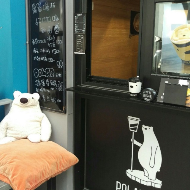 是不是光看上圖就覺得超級療癒的,星期天難得沒下雨,便到東區走走逛逛,(幾乎每個週末都在逛街)對你來說,逛街是代表什麼樣呢?有目的的購物?對我來說,逛街是脫離成天在家當家管、追劇,可以與真實社會有一些互動,散散步的時間,就像吃飽飯,要散散步,那種感覺。逛著逛著也是會口渴的,這時候就推薦你到POLAR CAFE來喝杯咖啡,與其說是一間咖啡廳,規模更像是外帶咖啡店,多了幾個座位這樣,外帶窗口有提示低消就是一杯飲品,店內是狹長的空間,我只有打開門往內照了一下,可以看到牆上、天花板四處都有北極熊的小擺飾,好可愛啊!!!!!!MENU品項也非常的簡單,女兒這天什麼都要拿起來合照一下,我們就在外帶窗口,點了寶拉熊拿鐵$200元,以外帶咖啡的價格來說,有點昂貴~但為了上面這隻埋在奶泡上頭載浮載沉的北極熊,就讓你貴一下是吧!是吧!女人不管到幾歲內心還是有少女啊~看到可愛的東西,心智就跟5歲女兒一樣....就先別管爸爸在旁邊放空的木頭狀了,噗~連杯子都超級可愛的啊~~~容許我幼稚病發作,說穿了,就是拿鐵上面放上一個特製的北極熊棉花糖,好喝嗎? 我覺得這杯拿鐵的奶味偏重,牛奶的比例偏高,嘴唇微微碰到棉花糖的地方,有微微的甜味,後來整隻北極熊棉花糖都進了二個小鬼的嘴裡,我有吃了一個手掌,單吃是很甜那樣,(廢話~就說是棉花糖了)門口的小椅子上有這隻可愛的北極熊娃娃,女兒又主動說要合照,兒子則是有樣學樣(很好),平常CUE他,都會在那邊難相處,喝到一半,歐~熊熊你真的好有戲!!!男士們帶約會的對象逛街時,記得帶來POLAR CAFE來杯咖啡,整個很加分啊!!!!!門口也可以坐5個人左右,我們是星期天下午三四點左右過來的,生意很不錯啊!!!!所以當時店面有點擁擠,我就請老闆把杯蓋直接給我,拍完一組熊熊最後的身前照,就帶著造型可愛的杯子以及好心情,繼續逛逛走走去!!!查看更多