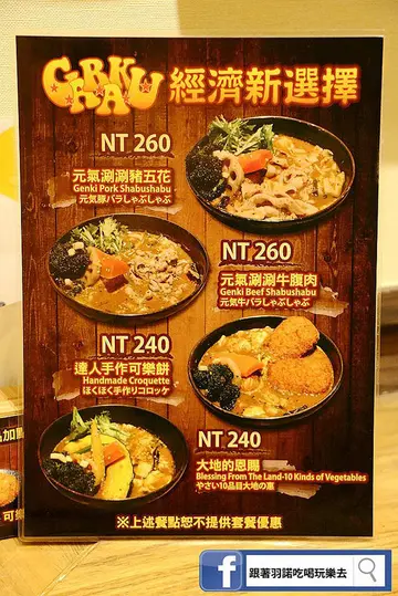 台北信義區的NEO19內從捷運象山站出發步行約10分鐘左右即可到達店內座位小巧精緻 以黃色系為主的裝潢看起來增添了活潑感每桌桌上都會附上飲用水及餐具 取用起來挺方便的"北海道GARAKU湯咖哩"完整菜單餐點的選擇性不少 主餐另外加上$70還會附上拉昔一杯如果第一次過來 可以參考店內附上的吃咖哩方式吃起來風味會更加不同喔 GARAKU招牌嫩雞腿這"GARAKU招牌嫩雞腿"才剛端上桌就可以聞到迷人的咖哩香氣薑黃飯跟咖哩是分開的飯給的分量不少 對於羽諾來說分量蠻夠的米飯是使用越光米加十穀米與薑黃特別烹煮而成享用前記得先將上的檸檬擠在飯上喔本來以為淋上檸檬汁的飯吃起來會有點怪沒想到泡進咖哩醬汁後吃起來意外的合拍耶鹹香中又帶著檸檬的果香裏頭的雞腿表面有炙燒 蔬菜也有先炸過所以吃起來香氣特別濃厚 吃了一口就讓人深深愛上啊!! 芒果拉昔 黑醋栗拉昔 芒果與牛奶融合的芒果拉昔喝起來特別香甜 夏天喝真適合黑醋栗拉昔喝的到微微的酸甜吃滋味 蠻爽口的~…Read More