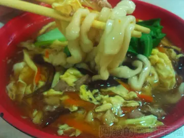 有些老字號的美味小吃店週日沒營業,加上老婆週六隔週休,也因此,不是我們沒機會能前往光顧,不然要是每年能光顧到一、兩次,就算很幸運了!在四四南村眷村裡的南村小吃店,就是上述我所說的其中的這樣一家老店。▲一到用餐時段除了一樓外連二樓也坐無虛席,生意非常好。開業於民國65年南村小吃店,原址在凱悅酒店(現為君悅酒店)附近。由於生意之好,每天傍晚用餐時刻,都會擁入大批人潮。甚至據說,店家還會沿著巷道搭棚子,席開幾十桌也是常有之事。後來因為眷村拆遷而搬到現址。▲牆上菜單和價格表,主要賣的是麵食、滷味、炒青菜…等。其中還有在小吃店難得出現的清蒸螃蟹,據說也頗受好評。但由於我們來的時後不是盛產螃蟹的季節,加上當下的時價有點偏高,所以就沒點這項招牌之一。但現場倒是也看到不少人改點清蒸蝦。▲滷味可是店家的招牌料理。▲自拿托盤,有牛肉、牛肚、牛筋、雞翅、雞肝、素雞、豬耳朵、豆干、魯蛋、海帶…等可選擇,要吃啥麼滷味自己夾。▲桌上的提醒,店家的魔鬼辣椒(非常辣),請酌量使用。▲我們點了一碗大滷麵、一盤炒麵、涼拌小黃瓜、滷味拼盤。▲「涼拌小黃瓜」是店家的招牌小菜,也是最令我們家驚豔的一道。我們第一次吃到小黃瓜是淋上大量的芝麻醬做成涼拌的。麻醬的濃稠度適當,麻醬香氣外還帶點香油香,再加上醋的微酸、蒜的嗆、最後小黃瓜食材本身的清脆帶點甜味,口感「香、脆、酸、甜、嗆」十分豐富但又不失其爽口,是一道相當獨特的開胃小菜。▲「炒麵」這好像成了幾乎每桌必點的招牌麵。手工桿的麵條,再與青菜、肉絲、蛋花共炒過。那麵條吸收了醬汁的色澤與味道,表面油亮,入口滑溜口感很有嚼勁。整盤炒麵外觀看起來雖有些樸實,但味道不重鹹且頗佳,令人胃口大開的一口接一口。 ▲「滷味拼盤」點了牛腱、牛筋、雞翅、豬耳朵、豆皮▲「滷味拼盤」滷味說是店內的鎮店之寶。不同一般滷味,這滷得透徹但口感相當清淡,最重要的還少了一股「雜」味且入口餘韻十足。原來據說店家將每種類別的不同滷味食材,用不同的鍋子分別去滷,才保持了各食材本身的味道,也因此才會不「雜」,不沾醬就十分美味。 ▲當然滷味沾上特製的魔鬼辣椒,是喜歡吃辣的人不可錯過的吃法。▲「大滷麵」 ▲「大滷麵」夏季到了,晚上6點多完食後步出南村小吃店,天色保有些微亮,而朝前方望去就看到聳立於不遠處前的101大樓。現代建築、繁華熱鬧的信義區,與佇立其中巷弄間的樸實眷村味,此刻在我腦中形成強烈對比。追求時尚、企業化經營或是保持傳統,而者為是?!這可不是有一定的標準答案,端看自己要留下什麼給人們,特別是要留下什麼給自己了!…查看更多