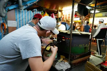 萬華南機場夜市美食很多,位於街尾的【無名推車燒餅】生意很好,每次經過都是大排長龍景象,現做現烤古早味手工長燒餅、鹹酥餅、紅豆餅、甜酥餅通通15元,是米其林必比登推介美食!實際吃過後風味是不錯,就是濃厚的古早炭烤香氣,但若要排太久的話其實好像也沒有一定要吃啦!無名推車燒餅 ❙ 一顆15元、現做現烤 南機場夜市超人氣長燒餅、鹹酥餅、甜酥餅!就是一台餐車,沒有店名招牌,販賣的品項就只有長燒餅、鹹酥餅、紅豆餅、甜酥餅,都是超銅板價格15元生意很好,店家人員也很忙碌,手都沒有停下來,只營業下午時間,看網路上是寫下午四點至晚上八點,每週三公休,不確定這樣的時間是否正確生意真的很好,每次來幾乎都是這樣的排隊畫面,這次忍不住也跟著排隊了,因為是手工現做現烤,所以需要等待,大約排了半小時左右吧現做現烤,很喜歡這樣的古早味畫面,烤爐溫度很高,生餅皮放上後很快就變色了在上面烤一段時間後還會夾入烤爐下接近火源的地方烤,烤的過程沒有太久,這樣的手工碳烤過程,一顆只賣15元不貴這個是紅豆餅跟甜酥餅,可由外型跟芝麻顏色區分烤好的餅金黃焦香,看著聞著特別想吃,好誘人啊甜酥餅餅不大,但一個只要15元這樣的大小也可以了,甜酥餅中間是空心的,有包糖,剛烤好熱熱吃糖是流動的,放冷就會凝固了,建議要熱熱吃口感較佳另外還買了紅豆餅跟長燒餅,鹹酥餅早在我們排隊前就已經賣完了,就沒有吃到了紅豆餅包有一層紅豆泥,不會過於甜膩,長燒餅甚麼都沒有包,也沒有芝麻,就是單純的餅香如果你有來南機場夜市,想吃的話可以順便買,但若需要大排長龍的話,個人是覺得就沒有一定要吃到啦!注意!!每個人口感喜好、感受及價值觀不同,文章內容為個人旅遊或享受美食後資訊分享我喜歡不代表你也喜歡,我不愛不表示你也不愛純粹與大家分享旅遊或美食資訊,麻煩請自己多做功課、觀看評論後再決定是否前往旅遊或用餐!…查看更多