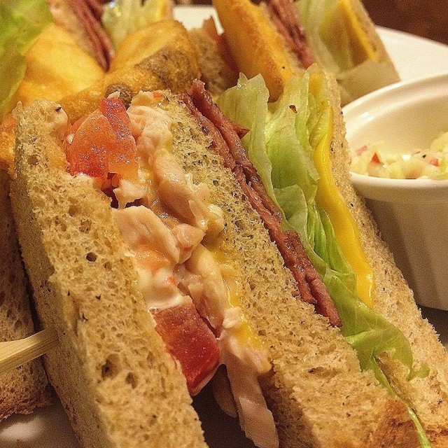 地址:北市仁愛路四段109號電話:2772-6174說來好笑~老弟難得回家用餐多半選擇的地點就是離家十分鐘路程的雙聖這次捨棄了排餐跟老弟一起點大漢堡加了錢多了濃湯~甜點跟飲料~飲料改成只能續一次~本日濃湯是洋蔥湯~基本上我不太喝洋蔥湯的今天這碗~我是覺得不太濃郁~不過看在洋蔥算多份上~勉強及格愛吃牛排的老媽還是照樣點了紐約克一樣是加價的前菜~今天這回是鴨肉~下面的醬汁是蜂蜜為主調~鴨肉頗嫩~配上醬汁十分可口~沙拉部份一樣是製式的凱薩沙拉料多且新鮮~口味自然是不錯的~一下子~我點的磨菇漢堡上桌~也是份量大到不知所措~牛肉肉片多汁~上面舖滿磨菇還有起士在起中~旁邊有酸黃瓜跟生菜~用麵包夾起來~一口咬下去真是過癮不論是上或下的麵包~都不會塌掉~真是太享受了配菜薯條每一根都有一定的份量~又不會太過於死鹹~可以吃到馬鈴薯本身的美味~老弟點的是培根漢堡~跟我的差不多只是把磨菇改成培根~當然也是少不了多汁的牛肉跟起士~還有均衡的生菜~比起Friday的漢堡~私以為這邊的較不那麼油膩~最後的甜點我選了草莓冰淇淋~雙聖的冰淇淋本來就有一定的水準了~因此吃起來還算讓人滿意老爸老媽點的布朗尼跟起士蛋糕~口感還不賴~綿密且香味十足的口感~真是讓人一口接一口!算是一個完美的Ending!查看更多