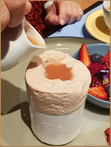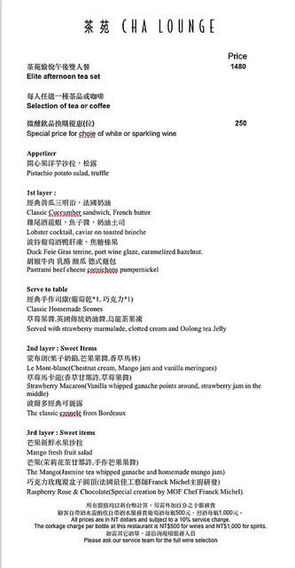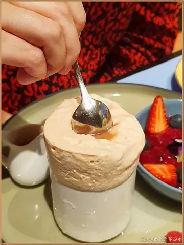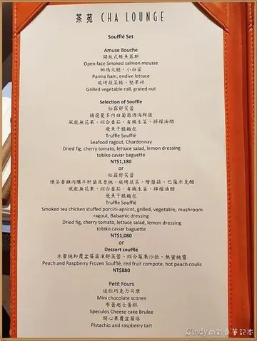 最近常到君悅走跳 每次都會經過茶苑看到好多人在用餐 像在吃buffet的那種後來瞭解了一下 是週末才有的肉食饗宴高級的肉肉吃到飽~~那個留在之後再來吃~~這個週末先來享受一下慵懶的週末午後時光但其實真正的貴婦都是平日來的吧!! XD走進君悅大廳從左手邊的電扶梯一下來右轉馬上看到這個開放空間就是今天要來吃下午茶的茶苑我想很多人都跟我一樣 走過錯過很多次了吧?!其實這裡一直有提供下午茶哦~~最近推出了少女跟貴婦都會愛的舒芙蕾下午茶套餐讓人更有前往的動力!!!套餐內都可以選一款茶或咖啡選茶的話可以不斷回沖咖啡則可以續杯一次茶單看起來很豐富 所以我們都想點茶來喝~但真的有點難選~~此時他們拿出厲害的聞香盒給我們~如此一來就不用看著文字憑空想像味道了~有聞香盒每個都給他聞看看 再選出最喜歡的~ 茶選好後 我們的開胃小點、飲品先送上了由左至右:帕瑪火腿小白菜、開放式鮭魚慕斯、碳烤蔬菜捲堅果脆開胃飲品則是迷迭香冷綠茶鹹香的帕瑪火腿裡面捲上小白菜 滿特別的組合 很有口感又好吃德國農莊 B&G 山竹瑪黛茶這款茶有淡淡的果香 但沒有那個酸度我是非常的喜歡 而且茶味不澀 又順口拿來配等等的海鮮很適合松露舒芙蕾 精選夏多內白葡萄酒海鮮匯風乾無花果、綜合番茄、有機生菜、檸檬油醋、飛魚子脆麵包第一次吃到以松露為主題的舒芙蕾實在讓人躍躍欲試松露舒芙蕾上面真的有一片黑松露~好奢華看起來澎鬆的模樣 真迷人松露一點一點的分布舒芙蕾裡每一口都是奢華芳香的氣味口感細緻綿密 真有如漫步在雲朵上一般表層與邊邊烤得帶點焦香 增添了雲朵的風味精選夏多內白葡萄酒海鮮匯你看看 這蝦子好大一尾彈牙新鮮不說底下還有顆飽满的大干貝、SIZE是一般2倍的蛤蜊以及3大圈的透抽不吃海鮮的人也可以選擇燻茶香雞肉釀牛肝菌及杏桃跟一旁的橄欖相比 這蛤蜊真的很大顆鮮甜無比的大干貝用刨成長扁條的小黃瓜圈住大量的有機生菜再淋上檸檬油醋 清爽無負擔 對喜愛生菜沙拉的我來說 真是最棒的搭配中式茶 白毫烏龍想著等等要配甜的舒芙蕾 來款中國茶 應該很對味~白毫烏龍特別清香 水蜜桃和覆盆莓霜凍舒芙蕾綜合莓果沙拉熱蜜桃醬這無疑是不管讓幾歲的女孩們 都少女心噴發啊!!!光是粉嫩嫩的顏色就先把我收買的徹徹底底這有點跳脫我對舒芙蕾既有的印象他不是熱呼呼然後澎澎鬆鬆的~反而整個都是冰冰的~讓人非常好奇吃起來什麼感覺上層是像慕斯一樣的口感與空氣接觸後會越來越軟 快要融化所以要趕緊吃~底下是水蜜桃霜 有點像冰淇淋 然後還有覆盆莓果醬跟整顆的凍成霜一樣口感的覆盆莓果粒綜合莓果沙拉 就是滿滿的一碗好好吃的莓果配一片芝麻煎餅 還以金箔點綴 又帶出奢華風這一碗酸酸甜甜的真是太好吃了~裡面草莓、藍莓、覆盆莓、小紅莓 好多好多哦~多吃莓果對身體好 有豐富的花青素還能抗氧化 讓我們女生吃甜點也能漂漂亮亮的發自內心的看了就開心接著把舒芙蕾上那一片草莓巧克力移開~~我要把熱熱的蜜桃醬加下去了冰火交融~天哪~~這真是太夢幻的一道甜點~中間有個洞 把熱蜜桃醬加下去~~然後就開始往下拌 我覺得拌起來不太美觀 但吃起來真的太可口了!冰冰涼涼之中又帶點溫熱的口感蜜桃的香甜與覆盆莓的酸味 混合的真好~配上熱茶 完美了簡直~在結束之前 還有可愛的甜點盤收尾由左到右:迷你巧克力司康、布蕾起士蛋糕、開心果覆盆莓塔迷你巧克力司康切成對半中間還夾了巧克力醬 好細膩布蕾起士蛋糕帶有灸燒的香甜氣味~開心果覆盆莓塔 讓我想起了在奧地利吃到的莫札特巧克力內餡美好的收尾~~從來不知道君悅2樓的茶苑有那麼好的環境最近推出的舒芙蕾下午茶套餐真心很適合想要好好聊天的情侶、夫妻、姐妹淘五星飯店裡的餐廳好處就是你可以好好享受這份時光他們沒有要拚翻桌率 只想好好的提供當下的客人美好的服務精緻細膩好吃的餐點 更是基本的必要水準 從來不讓人失望推薦給大家哦~~…查看更多