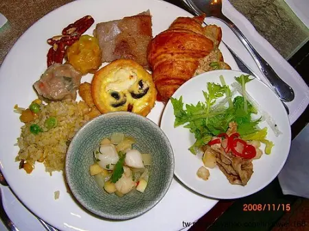 最近常到君悅走跳 每次都會經過茶苑看到好多人在用餐 像在吃buffet的那種後來瞭解了一下 是週末才有的肉食饗宴高級的肉肉吃到飽~~那個留在之後再來吃~~這個週末先來享受一下慵懶的週末午後時光但其實真正的貴婦都是平日來的吧!! XD走進君悅大廳從左手邊的電扶梯一下來右轉馬上看到這個開放空間就是今天要來吃下午茶的茶苑我想很多人都跟我一樣 走過錯過很多次了吧?!其實這裡一直有提供下午茶哦~~最近推出了少女跟貴婦都會愛的舒芙蕾下午茶套餐讓人更有前往的動力!!!套餐內都可以選一款茶或咖啡選茶的話可以不斷回沖咖啡則可以續杯一次茶單看起來很豐富 所以我們都想點茶來喝~但真的有點難選~~此時他們拿出厲害的聞香盒給我們~如此一來就不用看著文字憑空想像味道了~有聞香盒每個都給他聞看看 再選出最喜歡的~ 茶選好後 我們的開胃小點、飲品先送上了由左至右:帕瑪火腿小白菜、開放式鮭魚慕斯、碳烤蔬菜捲堅果脆開胃飲品則是迷迭香冷綠茶鹹香的帕瑪火腿裡面捲上小白菜 滿特別的組合 很有口感又好吃德國農莊 B&G 山竹瑪黛茶這款茶有淡淡的果香 但沒有那個酸度我是非常的喜歡 而且茶味不澀 又順口拿來配等等的海鮮很適合松露舒芙蕾 精選夏多內白葡萄酒海鮮匯風乾無花果、綜合番茄、有機生菜、檸檬油醋、飛魚子脆麵包第一次吃到以松露為主題的舒芙蕾實在讓人躍躍欲試松露舒芙蕾上面真的有一片黑松露~好奢華看起來澎鬆的模樣 真迷人松露一點一點的分布舒芙蕾裡每一口都是奢華芳香的氣味口感細緻綿密 真有如漫步在雲朵上一般表層與邊邊烤得帶點焦香 增添了雲朵的風味精選夏多內白葡萄酒海鮮匯你看看 這蝦子好大一尾彈牙新鮮不說底下還有顆飽满的大干貝、SIZE是一般2倍的蛤蜊以及3大圈的透抽不吃海鮮的人也可以選擇燻茶香雞肉釀牛肝菌及杏桃跟一旁的橄欖相比 這蛤蜊真的很大顆鮮甜無比的大干貝用刨成長扁條的小黃瓜圈住大量的有機生菜再淋上檸檬油醋 清爽無負擔 對喜愛生菜沙拉的我來說 真是最棒的搭配中式茶 白毫烏龍想著等等要配甜的舒芙蕾 來款中國茶 應該很對味~白毫烏龍特別清香 水蜜桃和覆盆莓霜凍舒芙蕾綜合莓果沙拉熱蜜桃醬這無疑是不管讓幾歲的女孩們 都少女心噴發啊!!!光是粉嫩嫩的顏色就先把我收買的徹徹底底這有點跳脫我對舒芙蕾既有的印象他不是熱呼呼然後澎澎鬆鬆的~反而整個都是冰冰的~讓人非常好奇吃起來什麼感覺上層是像慕斯一樣的口感與空氣接觸後會越來越軟 快要融化所以要趕緊吃~底下是水蜜桃霜 有點像冰淇淋 然後還有覆盆莓果醬跟整顆的凍成霜一樣口感的覆盆莓果粒綜合莓果沙拉 就是滿滿的一碗好好吃的莓果配一片芝麻煎餅 還以金箔點綴 又帶出奢華風這一碗酸酸甜甜的真是太好吃了~裡面草莓、藍莓、覆盆莓、小紅莓 好多好多哦~多吃莓果對身體好 有豐富的花青素還能抗氧化 讓我們女生吃甜點也能漂漂亮亮的發自內心的看了就開心接著把舒芙蕾上那一片草莓巧克力移開~~我要把熱熱的蜜桃醬加下去了冰火交融~天哪~~這真是太夢幻的一道甜點~中間有個洞 把熱蜜桃醬加下去~~然後就開始往下拌 我覺得拌起來不太美觀 但吃起來真的太可口了!冰冰涼涼之中又帶點溫熱的口感蜜桃的香甜與覆盆莓的酸味 混合的真好~配上熱茶 完美了簡直~在結束之前 還有可愛的甜點盤收尾由左到右:迷你巧克力司康、布蕾起士蛋糕、開心果覆盆莓塔迷你巧克力司康切成對半中間還夾了巧克力醬 好細膩布蕾起士蛋糕帶有灸燒的香甜氣味~開心果覆盆莓塔 讓我想起了在奧地利吃到的莫札特巧克力內餡美好的收尾~~從來不知道君悅2樓的茶苑有那麼好的環境最近推出的舒芙蕾下午茶套餐真心很適合想要好好聊天的情侶、夫妻、姐妹淘五星飯店裡的餐廳好處就是你可以好好享受這份時光他們沒有要拚翻桌率 只想好好的提供當下的客人美好的服務精緻細膩好吃的餐點 更是基本的必要水準 從來不讓人失望推薦給大家哦~~…查看更多