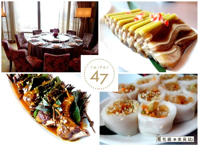 20171031第三次來信義微風樓上的台北47名人宴了謝謝客戶的安排讓我有機會 再度來信義微風的樓上享受台北市的無敵高空美景 四七名人宴應該是台北豪華中式餐廳的指標之一除了坐擁美景之外主打譚家宴也是特色之一餐廳的裝潢雍容華貴食物也是走藝術風四七名人宴在信義微風的47樓 要先搭電梯到四樓 再搭專屬的電梯上樓先來上菜了 [招牌三色開胃盤] 四七名人宴就是走一種精緻的風格開胃三品有三道開胃菜 因為東西很少所以顯得很珍貴吃起來也就特別好吃 今天的3道小品分別是 絕興醉雞 嫁紗海蜇卷 虎皮酥燒肉其中我最喜歡燒肉 豬皮微焦的感覺特別好吃不過我們訂席是12點 在1點之前 總共只先上了這道菜 而且大概就是3口的份量1小時上一道菜肚子好餓喔 [上湯魚翅佛跳牆] 佛跳牆看起來滿滿都是料 排骨酥 芋頭也都很好吃不過我不鼓勵吃魚翅 所以就不特別推這湯品了 [星洲娘惹蒸龍膽] 吃到第三道菜上菜的速度還是很慢我們開始忍不出去催服務人員了 蒸龍膽很鮮美 微辣的調味又跟一般的蒸魚不一樣 口味再稍重一點更好吃 [譚府粽葉飄香骨] 這應該是這次套餐的主菜了吧 超大 一根燉得軟爛的肋骨下面鋪的是粽葉 雖然我不太到粽香不過這個軟嫩的肋骨的確是滿令人驚豔的 [南瓜奶油焗菜膽] 每次來四七名人宴都會有這一道南瓜 很濃厚的奶油跟焗烤的味道吃到最後會有一點點膩 而外面看起來是一個容器的南瓜其實整顆都可以吃 單吃也很甜喔 [寶島海載鮮馥果] 甜點是水果 加上桂花凍 清爽的口感 [芋艿紅棗珍珠露] 本來不太想吃甜湯品的 小小喝了一口這個紅棗珍珠露沒想到太美味了就一口一口喝完了 很濃醇的 芋頭香味以及芋沙 配上一點點紅棗的味道好好喝 來四七名人宴了一定要好好欣賞一下高空的美景 今天的天氣還不錯 外場的部分當然也是豪華的感覺明亮的採光 還有雕花的椅子一整個奢華感也許來四七名人宴就是要抱持著這種吃巧不吃飽的美麗心情好好享受這周遭的氛圍 可能比單純享受美食更有點其它四七名人宴的食記 請參考20170224@台北四七名人宴二訪 亮點是菜和容器很漂亮20170109@台北四七名人宴 想按電梯去樓下吃牛排... 走過路過 也來萬的粉絲團按個讚 交個朋友吧 美食是努力工作的附產品台北四七名人宴台北市信義區忠孝東路五段68號47F. 02 8786 3177 創作者介紹 萬萬 萬*美食是努力工作的附產品…查看更多