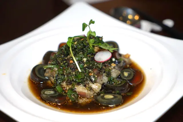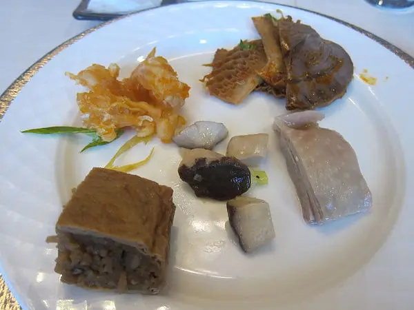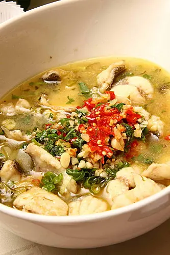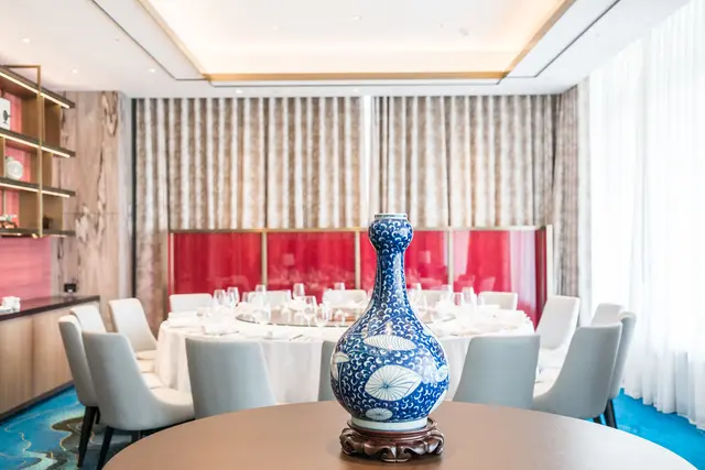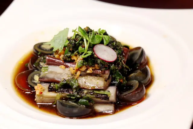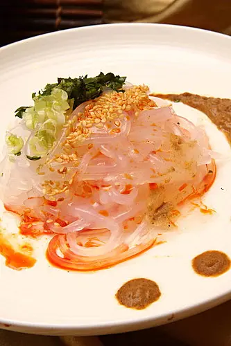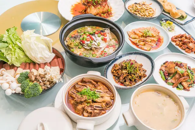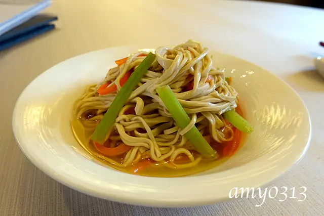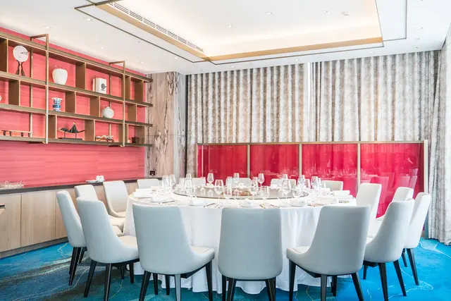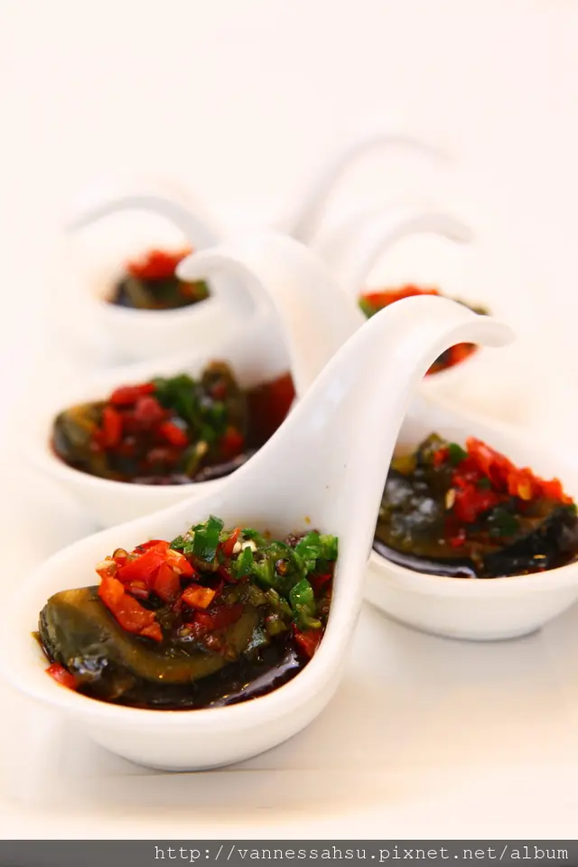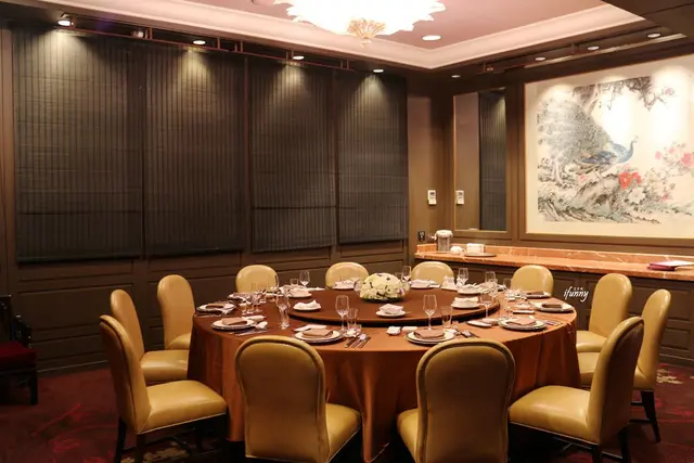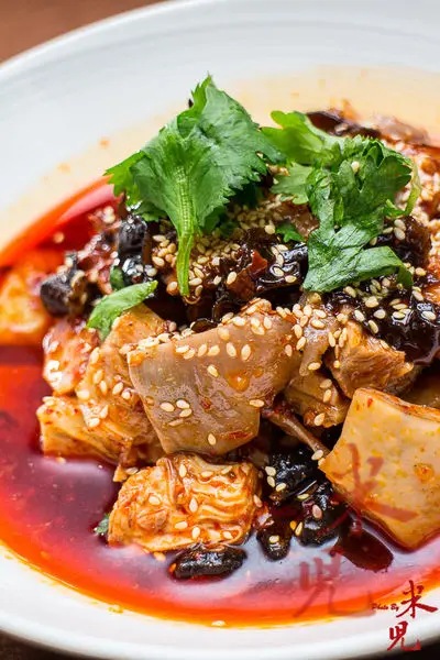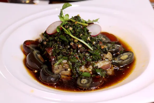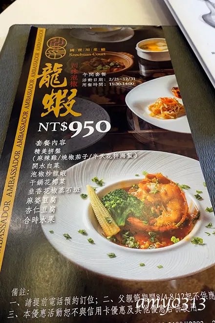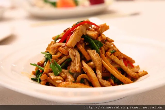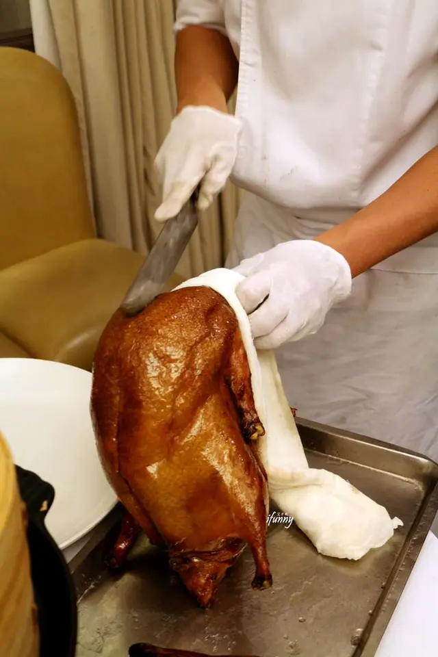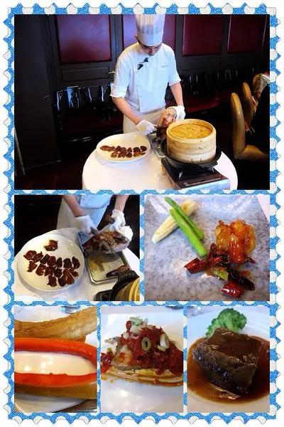 已有55年歷史的台北國賓飯店川菜廳,是榮獲連續兩年台北米其林推薦的川菜餐廳,今年封館5個月重新裝潢,以「文人雅趣」的情懷巧思,妝點「Modern Chinese」的經典氛圍,創造「最好的川菜靈魂、最新的精品空間」,延續百道米其林推薦菜色,再推45道全新菜色,讓饕客「好看,也嘗鮮」,即日起台灣最好的川菜廳「國賓川菜廳」隆重開幕。台北國賓大飯店川菜廳是台北知名的川菜餐廳,經歷半世紀的歷史,除了承襲百年經典道地川味之外,每年主廚團隊都會年年至四川取經,秉持著學習創新精神,近年來菜色不斷推陳出新,也逐漸受到年輕族群的喜愛。川菜廳位於台北國賓大飯店12樓,門口即有多線公車抵達,搭乘捷運到雙連站,走路約5分鐘即可抵達。艾方妮也算是無辣不歡的吃貨,身邊不少朋友也是同好,先前就曾開團拜訪過國賓川菜廳,當時的裝潢是屬於傳統的中國風。還記得當天我們餐會的dress code是戒指,所以大家還特地拍了照留念,非常地有趣!雖為川菜廳,但知名的北京掛爐烤鴨,是在地食客半世紀以來最愛的經典。當天我們當然不會忘記點這道鴨。這篇要介紹的重點,當然是重新裝潢後的國賓川菜廳。看過國賓川菜廳原本的裝潢,一定會對眼前時髦高尚的空間,發出讚嘆聲吧!特別聘請知名設計師團隊在12樓小吃區與各包廂中,用中國風與現代感混搭的創意美學。主梁柱選用藍金沙雲石,獨具巧思韻味。天花板上以黃白相間的水晶燈,是來自捷克品牌「Lasvit」,吊燈一盞盞皆由手工打造,捷克原廠並派人到現場安裝。透過水晶折射出的晶瑩穿透,讓空間散發華麗璀璨的優雅氣息。地毯紋彩如山水潑墨,視覺效果強烈,為空間創造流動感。為了讓「新客嘗鮮、常客驚艷」,期望能收服所有顧客的挑剔味蕾。除了絕美的設計空間及菜色外,連餐盤器皿及服務人員制服都全面更新,給予顧客截然不同的新體驗。小吃區配置不同大小的桌椅,即便兩人也可前來用餐,整個空間可容納約85名賓客。摘星樓以星雲狀燈飾打造滿天星斗,搭配國賓川菜廳標誌性烈紅地毯,更顯大氣磅礡。特殊活動滑軌隔間,可將場地區分為4間私人包廂,敞開則可容納約13桌中西式婚宴、60至70人會議或產品發表會等小型活動,這天是某扶輪社的聚會。12樓的絕佳採光,搭以舒服的紅色,令人並不會有任何壓迫感。雙刀耳片經過兩小時烹煮的豬耳與豬凍膠質交疊壓製成型,再片成薄薄且微微透光的耳片,及小黃瓜交疊擺放盤中,鋪上主廚特製的紅油醬料。入口清脆與Q脆感,紅油帶來的辣中微甜,麻香之後的一抹清新,相當清爽開胃。奇味松阪豬將松阪豬肉以花椒粉及薑末醃漬入味,蒸製後切成骰子狀再過油,調以主廚「奇味醬」。入口後麻香、香甜及酸辣滋味同時綻放,松阪豬略帶焦香彈牙的口感令人著迷,非常適合下酒。飄香拌烏骨雞將烏骨雞煮熟浸泡後切成粗絲,加入柳松菇,與炒香的宮保乾辣椒碎與花椒粉、辣油及獨門高湯等均勻混和。香氣濃郁的椒麻感當作冷盤享用,十分清爽開胃。干鍋娃娃菜將翠綠的娃娃菜切絲,與豐富香料、麻辣鮮露、蒸魚醬油等及五花肉片一起拌炒。娃娃菜入口的爽脆口感,咀嚼後呈現溫和香辣的鮮食感。特製蔥油餅原本是一道不在菜單上的隱藏菜,但詢問度非常高,因此本季終於成為正式菜單,讓所有顧客都能一嚐這個隱藏好滋味。點心主廚特別選用半燙麵把滋味鹹香的蔥花餡捲起,再盤成螺旋狀,鬆弛半小時。精準的火侯掌控,令入口時嚐到外皮的金黃酥脆,還有飽滿多汁清甜的青蔥內餡,鹹香誘人的滋味,令人一吃就愛上。牛排火鍋四川美食文化源遠流長,尤其火鍋更是有上千年的歷史,發展至今形成了獨有的川味火鍋。隨火鍋一起的菜盤,內含凍豆腐、菇類、鴨血、青菜,之後會收至廚房煮成火鍋。帶筋的牛仔骨,與馬鈴薯塊一起放進鮮麻香辣的火鍋湯底中。用宮保乾辣椒、花椒、辛香料爆香後加入牛肉湯一起熬煮。牛排與火鍋的搭配十分特別,牛排肉質香料入味,吃來十分嫩口,帶筋部位吃來很有嚼勁,馬鈴薯塊吸附了湯汁鬆綿麻香,吃來相當地過癮!第二吃是加入菜盤中的凍豆腐、菇類、鴨血、青菜加入湯底煮滾,滋味醇香濃厚,辣而不燥。配菜類吸附麻香醬汁,卻仍保有自身的鮮甜,吃來十分爽口。東坡肘子「東坡肘子」出自蘇東坡的故鄉四川省眉山,是著名的四川名菜。相傳其由來是有一次蘇東坡的妻子王弗在家燉豬肘時一個恍神,讓豬肘焦黃黏鍋,為了要掩飾焦味,她加進各種配料再細細烹煮,反而提升整道菜的滋味,蘇東坡非常喜歡,還向親朋好友大力推廣,因而傳世。這整隻肘子上桌時不僅香氣逼人,且相當有氣勢啊!主廚將豬肘加入炒香的辛香料後以小火燜煮四小時。其上的醬料部分是取泡椒醬為基底,加入薑末、花椒粉、刀口椒粉及老陳醋等炒香,最後淋在豬肘上。豬肘肥軟適中,吃來豐富的膠質黏在唇上,而吃來仍保留著Q勁,搭配醬汁更添風味。汗蒸回鍋肉肥而不膩的回鍋肉,是許多人必點的川菜,但汗蒸回鍋肉卻是一道經典但卻快失傳的川菜,作法比回鍋肉繁複許多。汗蒸是整道菜的關鍵,將肥瘦有致的五花肉先蒸2小時,將油脂逼出後,再切片煎至焦黃,再用宮保乾辣椒、乾青花椒、豆豉、蒜苗及薑片食材炒香,繁複的作法造就口感十分香嫩、肥而不膩。 金波雙椒魚頭王湖南傳統菜餚剁椒魚頭,源自清朝雍正年間著名文人黃宗憲在躲避文字獄時期,於一農家品嘗到此令人驚