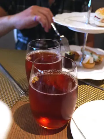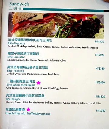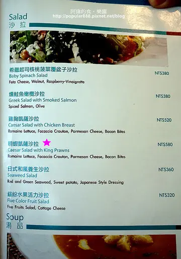 【邀約】阿偉有三位老友平時各忙各的,一年聚不到幾次,四月中旬的星期天,好不容易都有空了,決定找個舒服的地方喝咖啡聊__ __(自行填空)。本想找間咖啡廳就好,但一般的咖啡廳到了假日一位難求而且環境吵雜,不如去好一點的飯店吧!但我們可不想吃buffet下午茶,但喝咖啡時甜鹹點是一定要的有的,阿偉就想到上次曾經應邀去重新開幕的六福皇宮 丹耶澧義大利餐廳  試菜時,公關順便邀阿偉擇日帶朋友去一樓大廳的  Elite Café一禮莊園 品嚐下午茶,正好想到符合我們四人的需要,於是就請公關幫我們留位子。 Elite Café一禮莊園咖啡是在一樓Lobby,別跑到外面的Elite Bakery麵包店了。就從櫃檯旁邊的走道走過去,它其實是在櫃檯的背後。 台北威斯汀六福皇宮   Elite Café 一禮莊園地址:台北市南京東路三段133號1樓(捷運松山線/文湖線"南京復興站"1號出口步行2分鐘)訂位電話:(02)3518-3078 營業時間:每日: 08:00-23:00平日午餐: 11:30-14:00下午茶: 14:00-17:00周末與例假日早午餐: 11:00-14:00下午茶: 14:30-17:00 現場演奏周二至週五: 15:00-20:30周六、日: 12:00-17:00 空間滿寬敞的,舒服的沙發及漂亮的地毯,還有一整面的落地窗,窗外還有水池唷。 現場還有琴師演奏,滿有情調的,但我是聽不懂他在彈什麼啦! 藍色的MENU是餐點的,咖啡色是飲料的。 上面是午、晚餐的內容==以下是飲料的MENU== 由於口渴,先請服務生送水,端來的是義大利進口的普娜礦泉水。 目前主推的是這份 WEDGWOOD的限定版下午茶,所有餐具皆是這個英國骨瓷品牌,兩層的餐盤放了甜與鹹的點心,還包含一壺茶品,每份NT$.999+10%供應時間:每日14:00~17:00 首先呈上的是英國早餐茶( WEDGWOOD的限定版下午茶的茶品),用的全都是WEDGWOOD的瓷器唷! 我們四個人另外又加點了(左至右)日式抹茶拿鐵NT$.250;黑糖拿鐵NT$.280;拿鐵咖啡NT$.250猜猜哪個是阿偉點的? 答案揭曉~右邊的日式抹茶拿鐵是阿偉點的,喝起來的抹茶味不太濃,也沒有太甜的疑慮,可以說很溫和又順口。 WEDGWOOD的限定版下午茶登場Elite Café主廚將甜鹹點表現以輕盈到濃郁的三重風味,上層有:黑松露鴨肝泥襯餅乾法式起司球襯新鮮草莓燻鮭魚司康下層有:黑松露巧克力泡芙藍莓洋梨千層派覆盆子黑醋栗馬卡龍手工餅乾後方的是黑松露鴨肝泥襯餅乾,及右邊的燻鮭魚司康被兩位沒吃午餐的友人吃掉了。我只吃了其中一串法式起司球襯新鮮草莓,很妙的組合與口感,草莓的微酸與果香竟能與微鹹的起司球融和。 下層的黑松露巧克力泡芙還有一點金箔,看起來就很貴氣。裡面是滿滿的巧克力耶!但由於阿偉是白色控(不吃黑色的甜點),所以這顆泡芙都給朋友吃了。倒是吃了旁邊那個藍莓洋梨千層派,要怎麼切才不會爛掉呢?記得要先將上蓋酥皮拿起來另外切,從中心的軟餡切下,這樣就能完整分食。每一層的味道都很夠,甜度或酸度也不會太高,兩片酥皮夠酥夠香。覆盆子黑醋栗馬卡龍,上下兩片的杏仁蛋白餅皮甜度是高了一點,不過裡面的餡又透著酸度,我覺得做得很好、細緻有層次!但真的要配茶或黑咖啡一起吃比較好。 ◎英式下午茶(六道甜品+四款鹹點+一杯飲品)NT$.899+10%供應時間:每日14:00~17:00我覺得這樣的價位能吃到這麼多東西,算是滿划算的。上圖是六道甜點,可以到蛋糕櫃自行挑選。但因為我們四人幫聊得太盡興了,這六樣都由服務人員幫我們選好。 印象最深的是左邊的巧克力蛋糕,我有挖一口來吃,非常濃郁的巧克力滋味,是帶著一點微苦的那種。右邊的起司蛋糕也很濃、很綿密。 這個小電話及小檯燈都是用黑白巧克力做的。這個有天使翅膀的"雙層覆盆子起司"蛋糕,最中心的覆盆子醬,然後外層市包覆著起司醬,很多層次的口感與香甜。 這是四道鹹點,右至左分別是:番茄培根三明治菠菜甜乳酪蛋塔黑胡椒牛肉起司三明治燻鴨蘋果松露可頌 嗯...我只吃了半顆"菠菜甜乳酪蛋塔",其他都被沒吃午餐的友人給吞了 將兩份下午茶套餐吃完後,我們還想吃一點鹹點,就請服務人員幫我們搭配些東西。 點了上面三個打星星的餐點 ◎松露奶油薯條NT$.380+10%(附松露奶油醬、番茄醬) 薯條炸得完全不燥,但依然香酥也夠熱,沾著松露奶油醬吃,非常過癮又好吃(但熱量相對也高啦!) ◎一禮莊園總匯三明治NT$.420+10%看見滿滿的生菜在盤中間,心裡會覺得格外愉快。因為這時候正需要葉綠素與植物纖維來平衡一下啊! 胚芽吐司烤得微酥,拿捏得很好。三明治裡面的料給得很澎湃,除了生菜還有荷包蛋。 ◎明蝦凱撒沙拉NT$.580+10%除了滿滿生菜,還有三隻肥美明蝦,以及番茄、麵包丁及起司粉。 這明蝦新鮮程度從它彈Q的肉質感受得到,似乎有用醬汁烤過,顏色漂亮也入味。 最後再以水果盤作為ENDING!真是滿足又兼顧了健康!每一款水果都好新鮮、水份多又甜。 這天我們四人在Elite Café吃吃喝喝聊聊三個多小時,很愉快、很開心,環境舒服、餐點豐富有質感,我們以後應該會常來才是!查看更多