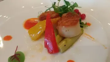 20181117大家都知道的陪伴我工作多年的六福皇宮在今年底就要熄燈了在這之前 剛好有客戶辦在六福皇宮商業宴請 仔細想想 我好像已經好久沒有吃過六福皇宮的商業餐了就在他熄燈之前再來回味一次吧 餐前麵包 這一次的商業套餐我們吃的是西餐 入座之前麵包就已經備好了 我特別喜歡雜糧的那一種 非常的有口感又有嚼勁 前菜的部分非常美味是乾煎干貝 還有烤蘆筍甜紅椒 魚卵干貝的部分非常的鮮美 番茄牛肉清湯 這道菜上來的時候我挺意外的 通常這樣子的湯不是牛肉應該是一塊塊顆粒或者是骰子牛的形狀但沒想到他居然是一片一片的牛肉片 湯的部分則清淡好喝 酪梨生菜沙拉這一道我非常驚艷 因為他給的是一整片的酪梨啊 太有誠意了我平常就很喜歡吃酪梨 這樣滑滑順順的口感 吃得很過癮 主餐牛排上來了 下層是馬鈴薯泥 牛排的部分表現就較一般了 不失不過 倒是馬鈴薯泥綿密好吃 甜點的部分是布朗尼蛋糕 不過蛋糕本身有點偏乾 就不特別介紹了這樣一份商業午宴套餐吃起來很飽足也很豐富 重點是服務生非常的有禮貌 我印象深刻在年底熄燈之前 應該沒有機會再來六福皇宮享用餐點了 就以這一頓套餐做為ending也算是非常幸福也很感恩了。走過路過 也請來萬的粉絲團按個讚 交個朋友吧 美食是努力工作的附產品六福皇宮台北市中山區南京東路三段133號 02 8770 6565…查看更多
