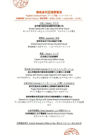 GUSTOSO義大利餐廳:季節限定晚間套餐「南義普利亞海鮮饗宴」,供應至九月底,十月份將推出第四季節限定新品,呈現的菜系主軸理念為來自南義的普利亞,是以橄欖與海鮮聞名的小鎮,在烹調上使用橄欖油為基底以最簡單的方式呈現食物最原始的自然風味,慢慢享受義式慢食體驗帶來的精緻饗宴,也能在用餐時飽覽窗外敦南綠蔭景緻。▲慕軒飯店其實就是前幾年話題炒很熱的「連勝文便當」,除了提供住宿之外也有提供餐點,一樓有URBAN331威士忌酒吧、二樓是GUSTOSO義大利餐廳,連續兩年榮獲「台北米其林指南推薦旅館」,獲得知名訂房網站Hotel.com、Booking.com及國際性旅遊評論網站TripAdvisor、World Luxury Hotel Awards殊榮。▲來的時候因夏至晝長夜短,天還未完全暗下,從窗外就能看到敦南綠蔭,不知道從這裡能不能看到跨年煙火,如果能一定更加浪漫,餐廳連結著飯店氣質,動線清晰流暢,又以灰色及原木質帶來沉穩低調的生活氣息。▲GUSTOSO 義大利餐廳(慕軒飯店)菜單這次我跟阿姊一人各一套分著「主廚精選星光套餐、南義普利亞海鮮饗宴」。▲餐前麵包一整籃剛烤好冒著熱氣的麵包,厚實酥脆,沾上橄欖油越嚼越香,從中午到晚上這一段未進食的空窗期,帶來了飽足感,重點是麵包還能無限續,真是樂開懷。▲青蘋果凱薩沙拉佐杏仁檸檬汁 (主廚精選星光套餐)清脆爽口的一道沙拉,配色鮮明使人愉悅。▲起司蟹肉餅配塔塔醬季節田園沙拉 (南義普利亞海鮮饗宴)炙烤起司塔塔醬下是炸藍泳蟹肉餅,口感酥脆爽口內裡綿密帶著一絲絲的蟹肉條鮮味,但帶來驚喜的還不只這些,加入香氣十足的芋頭,非常開胃。▲碳烤東海岸中卷佐蜂蜜芥末醬(南義普利亞海鮮饗宴)我很驚豔於僅碳烤過的中卷就能有如此鮮美的滋味,很新鮮!厚實又Q嫩,後半部還帶著Q韌的咬勁,沾上主廚特製蜂蜜芥末醬更加對味,碳烤味越嚼越香、越嚼越涮嘴。▲奶油番紅花蛤蜊濃湯(南義普利亞海鮮饗宴)每一口都帶著淡淡番紅花迷人香氣、柔和不過搶戲的奶油香,湯裡也藏著肥美飽滿又多汁的蛤蜊迸出海洋氣息的鮮甜,看似濃郁卻不膩口。▲義式蔬菜羅勒番茄清湯(主廚精選星光套餐)番茄清湯酸的很爽口、酸的很開胃,將番茄的酸爽果韻與蔬菜的甜味都熬出來了。▲奶油培根蛋黃義大利麵(主廚精選星光套餐)煮的恰到好的義大利麵是全熟Q彈有咬勁的口感,捲起巴著醬汁的麵條,暴風式吸入,清爽鹹香的滋味有著柔和的奶油香。▲帆立貝傳統辣炒鯷魚香蒜橄欖手工杜蘭莎小麥細麵(南義普利亞海鮮饗宴)杜蘭莎小麥細麵是慕軒主廚手工自製,每一根麵條皆完美吸附了鯷魚與橄欖帶著辣感與蒜香交織出的濃郁香氣與滋味,佐上一大顆充滿海味Q彈鮮甜的帆立貝,非常滿足。▲碳烤美國安格斯肋眼牛排佐炙燒焦糖鳳梨小牛胸腺 8oz(主廚精選星光套餐)選擇5分熟度,略帶點血水,切下去柔嫩中帶筋感,毫不費力,牛排色澤是漸層粉嫩至碳烤後的肉色,油花與肉均勻分佈,肉質軟嫩帶有口感及肉汁,沾點海鹽就可明顯感受到肉的鮮味及肉香味。▲交錯著吃牛排與炙烤後的時蔬,比較不會膩口,特別喜歡焦糖鳳梨那酸爽的滋味,甜甜的很開胃。▲普利亞風味奶油橄欖波士頓龍蝦及爐烤青石斑魚(南義普利亞海鮮饗宴)一整隻嚴選波士頓龍蝦佐上青石斑魚,色彩鮮豔炫爛,像是在夜色中慢慢炸開綺麗的煙花,撲鼻而來鮮香迷人的海味。▲波士頓龍蝦肉質Q彈緊實,經主廚細心處理過,直接就能大快朵頤,也別看龍蝦螯雖小但肉感確很豐富。▲青石斑魚經初榨橄橄欖油及蒜頭調味,主廚拿捏經準的火候烘烤,使的肉質細嫩鮮甜,每一口盡是新鮮天然的美味。▲主廚特製甜點(主廚精選星光套餐)從沙拉慢慢吃到主菜的最後也飽的差不多了,看到甜點立馬啟動了另一個甜食胃(笑),一球草莓冰淇淋搭著碎餅乾吃,甜甜涼涼的。 ▲炙烤焦糖杏仁松子雪藏糕(南義普利亞海鮮饗宴)我第一眼看到以為是棉花糖的糕點,但不是,它的口感是慕斯和冰淇淋的結合,入口沁涼隨之化開了甜味,又多了杏仁香氣,很好吃耶。▲肉桂紅茶(熱)環繞在鼻息間濃郁的肉桂香氣伴隨著紅茶香,優雅醇厚,熱呼呼喝下去很舒服。 查看更多