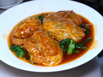 照片記錄:人均約1,400。作為一間與我年齡相仿(不算特別老)的老店,是有所期待的,但這次用餐經驗實在不盡理想。口感爽滑細嫩的肴(硝)肉、搭上鎮江醋和薑絲會是個好的開始,但雙拼的另一道若挑選錯誤可就慘了~! 招牌脆皮烏參先滷後炸再煨煮,脆中帶黏,煮汁卻非喜愛的味道,素黃雀焦香感特濃厚,相比之下榮榮園降低了焦、提升調味的活潑更勝一籌,濕黏的砂鍋菜飯只得用紅燒肉來覆蓋掉(見不到就好?)、雖說還挺清香..🤔芋艿雞的芋頭口感不錯、去骨雞腿肉則顯得無趣,醃篤鮮蠻可以、喝了不少,兩款點心很兩極,小籠包的酒香討喜、鮮蝦煎餃不太懂這種滿滿玉米味的表達...(雙拼:魚子醬墨魚🤷♂️、水晶肴肉👌)(脆皮烏參)(蔥油芋艿雞)(鮮筍紅燒肉)(砂鍋菜飯)(豆苗素黃雀)👌(鮮蝦煎餃)(小籠包)👌(醃篤鮮)👌(蓮子芋泥,芋泥帶有彈性,很清淡表現原味、不甜膩,我可以再甜一點)…查看更多