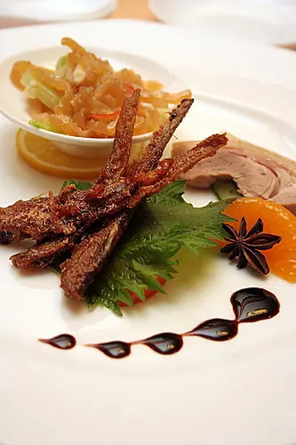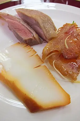 照片記錄:人均約1,400。作為一間與我年齡相仿(不算特別老)的老店,是有所期待的,但這次用餐經驗實在不盡理想。口感爽滑細嫩的肴(硝)肉、搭上鎮江醋和薑絲會是個好的開始,但雙拼的另一道若挑選錯誤可就慘了~! 招牌脆皮烏參先滷後炸再煨煮,脆中帶黏,煮汁卻非喜愛的味道,素黃雀焦香感特濃厚,相比之下榮榮園降低了焦、提升調味的活潑更勝一籌,濕黏的砂鍋菜飯只得用紅燒肉來覆蓋掉(見不到就好?)、雖說還挺清香..🤔芋艿雞的芋頭口感不錯、去骨雞腿肉則顯得無趣,醃篤鮮蠻可以、喝了不少,兩款點心很兩極,小籠包的酒香討喜、鮮蝦煎餃不太懂這種滿滿玉米味的表達...(雙拼:魚子醬墨魚🤷♂️、水晶肴肉👌)(脆皮烏參)(蔥油芋艿雞)(鮮筍紅燒肉)(砂鍋菜飯)(豆苗素黃雀)👌(鮮蝦煎餃)(小籠包)👌(醃篤鮮)👌(蓮子芋泥,芋泥帶有彈性,很清淡表現原味、不甜膩,我可以再甜一點)…查看更多