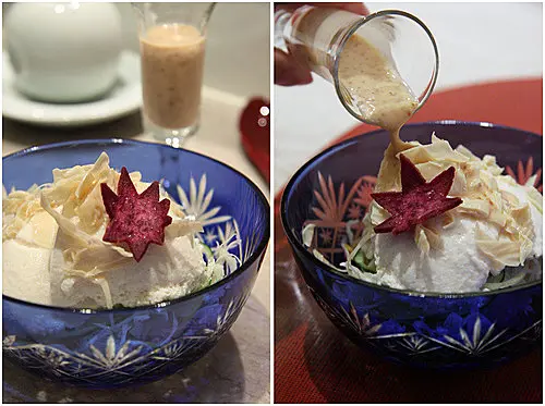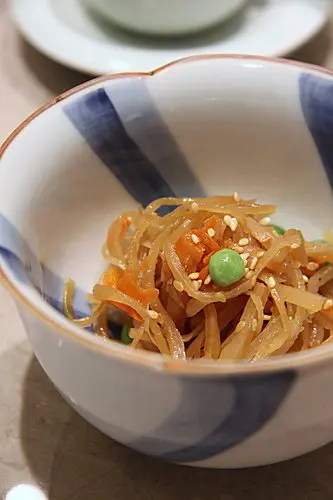 台北老爺酒店最近推出北海道來的和牛壽喜燒套餐,這在日本非常流行,台灣卻很少人做,重點是價格也還可以接受啊!這天朋友約我們到老爺酒店吃飯,說是要請我們來吃吃看新出的北海道富良野牛壽喜燒,之前在日本就常常看到和牛壽喜燒,但是台灣卻很少人做,讓我可是想念的緊,當然一定要來吃的啦!有會請吃飯的朋友真好。我們來到的是台北老爺的中山日本料理廳,在老爺酒店的2樓,感覺老爺酒店日本客人蠻多的,我們到1樓的時候就有好幾位日本客人在辦理入住,服務人員的日文也都沒問題,看起來很厲害呢!而中山日本料理廳都是採包廂式,差別在大包廂或是小包廂,我們今天就安排在這6人包廂,不過因為有7個人所以多了一張椅子。整個擺設是非常簡單的,但卻感覺得出老爺身為五星級酒店的高雅大器,不過也比較傳統就是了。酒的部分可以跟餐廳點,剛剛入口處就有一面清酒牆,不過朋友今天有自己帶酒,是最近很流行的獺祭喔!這麼大一罐今天當然是喝不完啦!來的時候有請店家先幫我們冰起來,清酒要在一定的溫度會比較好喝。我們的前菜是很精緻的日式小菜,口感和味道很清爽,而且吃得出是下過功夫的,一點醬汁一點食材都是用心製作,有著日本料理精挑細選後展現出的那種不經意。下一道是生魚片,老實說新鮮就是好吃,師傅把他擺得很美,一點都不俗氣,有他們大飯店的品質在。其中有一片是傳說中的黑鮪魚,之前我們常常形容生牛肉、生雞肉像黑鮪魚,現在是要反過來形容了,這個黑鮪魚生魚片好像生牛肉一樣濃郁呀!吃完生的,再來的是天婦羅。用可愛的提籃裝著天婦羅,我得說吃到目前還挑不太出毛病,再怎麼樣畢竟也是有口碑的飯店,就算沒有特別突出新穎的菜色,在表現上還是有一定的水準。炸物沒有油耗味,炸蝦也是外酥脆內鮮嫩,對於很少吃精緻日本料理的我們來說,這是很難得的。接著就要進入我們的主餐~北海道富良野和牛。我一直以為這就是今天的壽喜燒主餐了,還想說也太有創意了吧!怎麼跟我知道的壽喜燒不一樣?後來服務人員來說,這是陶鍋不是壽喜燒喔!原來如此啊!是壽喜燒前的一道湯品。但是裡面足足有兩大塊的和牛肉耶!有種伴娘在搶新娘風頭的感覺喔!就在我們吃陶鍋的時候,壽喜燒已經在外面準備了。事先炒洋蔥倒醬汁這些動作都是在外面,畢竟裡面的陶鍋還沒收不夠大,光那味道就夠人流口水,幸好有前面的菜先墊墊胃,不然真想跟她說我來就好。當我們的鍋還在準備的時候,肉就先上桌了,先給大家拍拍照。這一份是6個人的份量,每一片都很大片,不是小氣的給一點點喔!一個人大概可以吃到兩大片吧!我們不多說就先來涮肉吃了。大塊的和牛涮起來就是一個”爽”字,一下就鋪滿火鍋的表面,而且富良野牛本身的香氣就很足夠,拿來放在壽喜燒裡面煮,吸飽了醬油湯汁,味道又更豐富了。起鍋後再沾上滿滿的蛋液…那一整個濃郁香滑,有醬油香還有蛋香,最主要的還是富良野牛本身的柔嫩還有和牛香氣,加上熟成後帶有一點微酸,口感上變化較多也比較不那麼膩。不只拿來做壽喜燒好吃,我想自己在家煎牛排應該也不錯?好奢侈的想法。等牛肉吃完就放進其他的野菜,當作壽喜燒一個美味的後續。可能是怕大家吃不飽,緊接在壽喜燒後面的是三貫握壽司。那個比目魚鰭邊很肥美,幾乎入口即化,在和牛之後又來清淡的握壽司,感覺像是在為一首氣勢澎湃的歌收尾了。果然沒錯,接下來上的是蛤蠣湯,以我之前吃過割烹料理的經驗,在主餐後上一道清淡的湯給大家清清口腔的味道,還有暖暖胃。這次主餐的富良野牛真的蠻好吃的,可能是因為生長在很冷的北海道的關係吧,油脂分布的很均勻,肉質不是完全的入口即化,還是帶有一點牛肉的嚼勁,口感比較豐富一些。我覺得老爺酒店這次推出的餐點CP值蠻高的,一人1500元就可以吃到和牛割烹料理,而且還是在五星級的酒店裡面,請客或是找朋友聚餐都很划算喔!我有拍他們的菜單,可以給大家參考一下。…查看更多