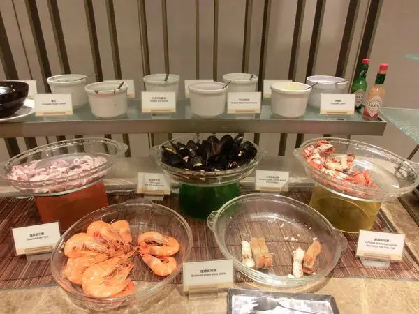 20161118有什麼事比跟好姊妹相聚還開心呢!存了好久的老爺餐券就拿出來用掉啦 萬還沒有吃過台北老爺的自助下午茶聽說甜點蠻不錯的! 就來看看吧!甜點雖然是重點 但吃buffet還是得先從鹹食開始老爺的buffet餐廳就是二樓的Le Cafe咖啡廳 餐枱的動線基本上就是圖上這長長的走道旁連接到門口的一個半圓弧形 食物的部分 大概可以分成幾部分熟食區/現煮麵區/三明治漢堡區/生菜沙拉區/冷盤小菜區/麵包蛋糕甜點區/咖啡飲料區/冰淇淋區熟食區的部分 大概有二、三排的食物 燉魚現煮麵區可以客製化 這也是老爺下午茶唯一的現煮餐枱另一排的熟食區 也有下午茶輕食小點 薯條 雞翅等等平心而論 熟食區的選擇不算多 大概去個一次就會發現不知道要拿什麼了