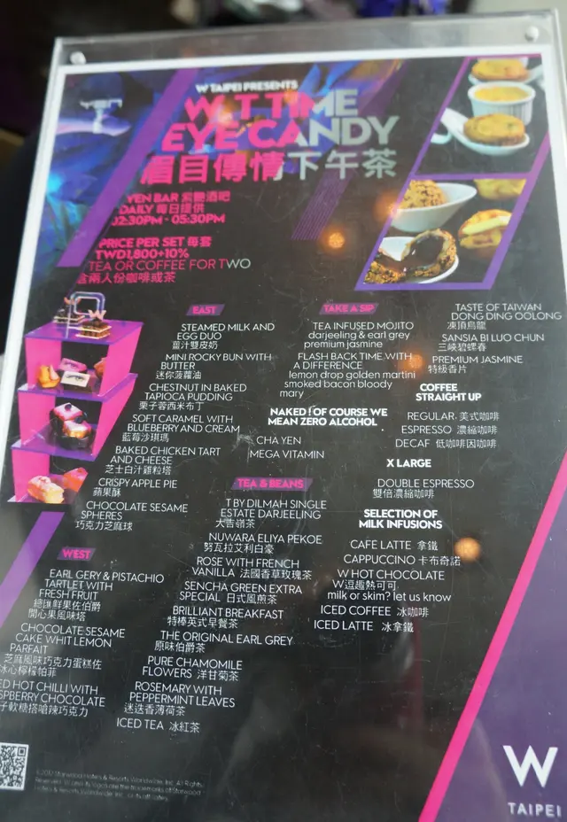 在台北W飯店31樓的紫艷酒吧,充滿紫色浪漫的氛圍取自六大W飯店特色甜點,組成一座101甜點塔再為每個甜點屬性搭配一杯shot調飲望著101美景,優質的微醺下午茶(未滿18歲請勿飲酒 喝酒不開車 開車不喝酒)『台北W飯店31樓紫艷酒吧』 雖然住不起W酒店,但總可以去吃個下午茶吧XD不經意的在網路上看到某平台正在做W飯店下午茶的促銷利用上台北玩的兩天,乾脆就狠訂一組,來試試看,反正住不起就來吃一頓吧透過此平台去預定W漫遊下午茶組原價兩人1980元,現在只要兩人1710元訂單完成平台同時會幫你預約選定日期時間的訂位在這直接跟大家說一個訂位的訣竅如果你是甜蜜的小倆口或者是兩個閨密想去喝兩杯在訂位的時候記得註明最角落的兩人座位因為這裡你才能和101合照啊但你如果多人就可以訂包廂啦~那就另當別論W飯店的31樓左邊是個中餐廳要享用下午茶則是右手邊的【紫艷酒吧】喔大片的落地窗,整片陽光灑進室內穿插著紫色的玻璃、地毯、桌椅,整個就是瀰漫的紫色浪漫元素會讓女生整個心情特好 剛坐下來,服務人員就遞上了機票和護照(誤很用心的,機票上印有餐廳的資訊而護照呢,就是這次下午茶101甜點塔和調酒的介紹,十分用心 坐在角落的位置才能把101甜點塔和101同時拍進去啊而且下午茶這個時段,大家桌上都擺上一組,整個超有氣勢的也讓人相機快門按不完啊【W TAIPEI橙酒乳酪慕斯佐巧克力椰子餅】台北W經典人氣款甜點,以橙酒打造綿密慕斯主體白色外觀光滑討喜、椰奶香四溢,最後以椰子餅酥脆口感平衡,完美收尾搭配調飲:SIDECAR由午茶品項中的橙香作為延伸,以柑橘系調酒相佐 以甜中帶苦的柑橘利口酒為引,帶出馬爹利NCF干邑奔放滑順的焦糖甜味再巧妙地利用巧克力苦精中的苦澀感打造『橙香調』且『甜苦與共』的完美調飲【W KOH SAMUI泰式酥炸雞翅】來自蘇美W主廚獨家私傳配方,一口咬下盡是紅咖哩醬的濃厚、泰國檸檬葉的清新以及香茅的微嗆,泰式酸辣口感,恍如置身蘇美島碧藍海島泳池畔旁搭配調飲:EMPEROR OOLONG MARTINI特選尾韻淡雅的烏龍茶作為主軸,緩衝酥炸雞翅帶來多重香料的厚重口感調酒師使用烏龍茶風味琴酒,以蜂蜜提升口感層次,再以鐵觀音糖漿堆疊出豐厚茶感【W SHANGHAI焦糖蛋塔】上海W人氣手工焦糖蛋塔奶香濃郁宜人口感既酥鬆又綿軟的特性,與咖啡調酒完美契合詮釋既懷舊又帶風尚感的上海風情搭配調飲:MAKER'S MACCHIATO使用美國波本威威士忌打造奔放口感,以現淬咖啡輕微苦味在舌尖點綴再以KAHLUA咖啡利口酒尾韻帶來淡淡的可可香氣完美呈現極致味道帶來溫順迷人的酒韻【W BANGKOK椰奶斑蘭戚風蛋糕】曼谷W主廚以當地經典食材『椰奶』與『斑蘭』打造細緻戚風蛋糕加上椰漿讓泰式風味更加濃郁,表面再淋上椰漿綿密之際更能品嚐到多層次口感搭配調飲:GUEI FEI FADES將搗碎新鮮石蓮花入酒,打造舒服柔和的草本系調酒其中荔枝柔媚香甜氣味貫穿整杯調酒帶有淡淡香草味點綴其中,以緩衝霸道的椰奶厚實口感【W HONG KONG迷你燒霜和牛堡】造型可愛討喜,是香港W最受歡迎的品項之一特選澳洲M5和牛,以日式TATAKI炙燒手法保留和牛的肉質結構及其鮮嫩多汁搭配香烤蒜味生菜絲、紫蘇柚子醋、紫蘇水芹等一口咬下萬種滋味,令人吮指回味搭配調飲:GORDON ROUGE ROMANCE入口以草本清新、略帶苦澀的CAMPARI草藥利口酒為開端加入些許柑橘利口酒與現榨葡萄柚汁呈現清爽果香,以緩衝牛肉的油膩感【W SINGAPORE抹茶奶油起司蛋糕】新加坡W主廚私心最愛的新加坡午茶品項之一,抹茶略顯苦澀內餡藏有奶油起司,再加上薑味覆盆子糖漿以及穀物脆片打造底部甜而不膩,口感豐富搭配調飲:ORIENTAL SPARKLE以煎茶伏特加為主體,為抹茶甜點帶來雙乘的感受!加上覆盆莓與柚子醬打造酸甜口感,煎茶帶出淡淡茶韻而氣泡口感同時也消緩了奶油起司的濃郁感101甜點塔的噱頭真的做得很足而且可以在31樓看的窗外的美景,超美 但你說要吃飽,我覺得到不是吃飽,而是吃氣氛有些甜點口味真的不錯,例如:焦糖蛋塔總歸一句話,要來的話第一,請先吃飽墊肚子再來第二,千萬不要開車來,因為喝酒不開車 開車不喝酒推薦給大家喔…查看更多