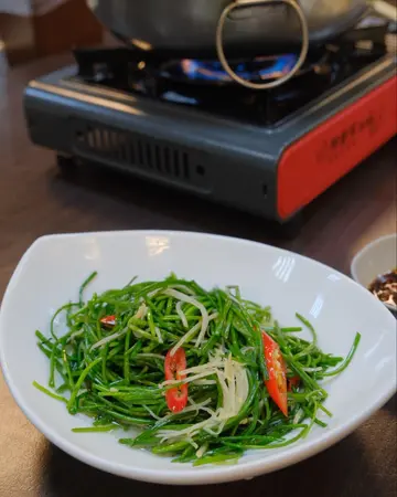 蕃薯葉(NT200/中):鮮綠色嘅蕃薯葉質感軟身得黎帶點嚡口,而且調味過咸,不吃也吧。