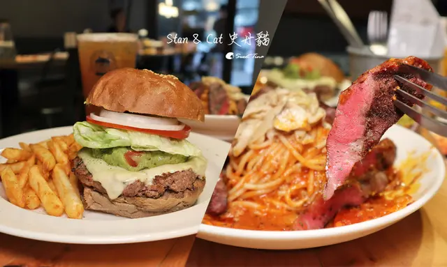 東區超人氣熱門漢堡美食推薦! 台北大安區必吃美式餐廳「Stan & Cat 史丹貓美式餐廳」無論是漢堡或牛排都是店內的超人氣美食想來大安區吃午餐、晚餐、美式牛肉漢堡等等這間位於東區營業的「Stan & Cat 史丹貓美式餐廳」也是不錯的選擇台北大安區好吃午餐、晚餐、漢堡、捷運捷運忠孝敦化站美食、東區美式餐廳捷運忠孝敦化站必吃推薦、美式漢堡、美式餐廳、超人氣美食、Stan & Cat 史丹貓美式餐廳Stan & Cat 史丹貓美式餐廳 說到台北有名的美式漢堡就不得不提到這間在東區深耕好幾年的Stan & Cat 史丹貓美式餐廳 在google擁有千則評論 分數高達4.3星 評分可以說是相當不錯 在台北算是小有名氣 「Stan & Cat 史丹貓美式餐廳 忠孝店」用餐空間蠻寬敞的 帶朋友或家人聚餐都適合 椅子下方還有附上置物籃 超貼心!! 沙發上還有超可愛的熊熊 超適合用來拍照!! 需要飲用水及醬料都可以直接到座位後方的架上取用 在店內處處都看的到美式風格的元素想感受濃濃的美式風格 來這邊就對了 「Stan & Cat 史丹貓美式餐廳」|紅茶拿鐵剛上桌熱呼呼的紅茶拿鐵趁熱喝最好喝 濃郁的茶香蓉滑順鮮奶搭餐超幸福「Stan & Cat 史丹貓美式餐廳」|可樂 店內的可樂、雪碧、紅茶、綠茶都是可以無限續杯的飲料冰涼的可樂超適合配漢堡 喝完可樂如果想換其他免費續的飲料也都可以 點這個超划算「Stan & Cat 史丹貓美式餐廳」|天阿好大牛肉堡 這"天阿好大牛肉堡"根本是漢堡界的比薩斜塔雖然用料多到讓漢堡傾斜 但高聳 屹立不搖啦光5.5盎司的火烤牛排就用了三層美式起司及培根也有兩份搭配蜂蜜芥末醬記濃郁又不失爽口大口咬下就可以吃到滿的牛肉汁及起司香氣 如果不知道怎麼啃 可以把漢堡的用料拆開吃~綿密馬鈴薯泥及炸的香脆的薯格享用就夠有飽足感 「Stan & Cat 史丹貓美式餐廳」|美式火烤軟嫩牛排 美式火烤軟嫩牛排吃起來油花香氣鮮明 肉汁也豐富本身有用胡椒 鹽調味過 所以吃的時候不用再另外調味吃起來就超香 這邊不只漢堡好吃 牛排也非常推薦!!旁邊還有附上薯塊及炒過的切丁番茄 甜椒 櫛瓜等等來平衡吃過肉肉後的味蕾用餐起來完全不油膩 「Stan & Cat 史丹貓美式餐廳」|愛心小雞塊(大) 小雞塊搭配的是蜂蜜芥末醬 香脆的雞塊結合蜂蜜芥末醬香氣十足 好吃耶!!Stan & Cat 史丹貓美式餐廳 忠孝店的用餐環境不錯 餐點也很棒經過附近時不妨也來嘗嘗看吧!!…查看更多