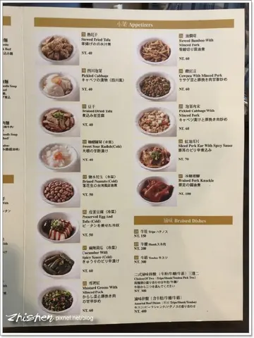 Braised Pork Knuckle / Brined Peanuts / Mustard Greens With / Sliced Pork Ear with Spicy Sauce / 牛肉麺 / 牛筋 / 加麵 / 半筋半肉牛肉麵 / 四川泡菜 / 奶酪 / 皮蛋豆腐 / 豆干 / 紅燒牛肉麵小辣 / 原湯抄手 / 雪花牛肉麵 / 滷豆干 / 熱花干 / 擔擔麵 / 红油 抄手