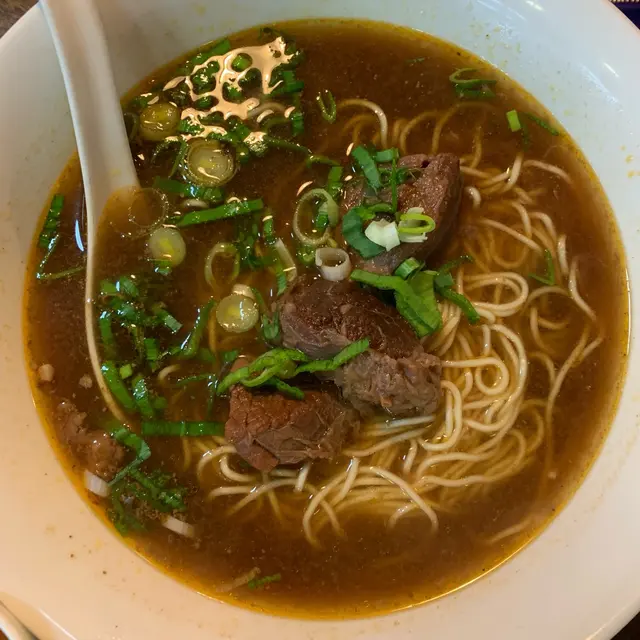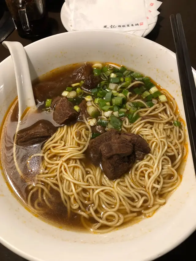 連續兩間名單店家大排長龍,差不多要沿路打鳥了,剛好在【史記正宗牛肉麵】附近,跑路熱到半暈本魯也有點不想再走,帶著麵桶大弟上麵館順勢而為。 好久不見的史記正宗牛肉麵,靈魂的牛骨湯頭就是香醇濃郁,滿漢規格是應有盡有,除了當下品嚐有感,完食後這舌尖完全沒有負壓殘留,是好湯才有的呈現,大弟只有說價位不便宜,味道是一支大姆指,對本魯來說,這碗滿漢紅燒牛肉麵能夠對上他這個麵桶的味,已經很值得。 當時知道四月初史記鴛鴦麻辣要打上熄燈號,除了小小惋惜,也讓本魯有點措手不急,好在牛肉麵還有得嚐,來日方長,期待再訪回味一下招牌白湯。ΩMENU Ω紅油抄手 70NTD 抄手包得緊實,皮薄餡多,內餡鹹香,口感討喜。 Ω胡麻芥藍 80NTD 胡麻醬香頗濃郁,酸甜味略為明顯,和印象中大賣場某牌子的日式胡麻醬料風味相近。 醬淋得多,也的確讓芥藍吃起來很有味,搭配麵湯也有感。 Ω招牌滿漢牛肉麵(含清燉/紅燒/雪花牛肉&牛筋) 350NTD Ω用牛骨熬製的湯頭,香醇濃郁,入喉後的溫順不燥,是好湯來的。 麵條剛好用的是魯個人比較偏愛的細麵,略軟但不會太過爛,吸飽了湯汁味道很夠。 Ω滿漢裏的牛肉包含清燉(厚片)、紅燒(塊)、雪花(薄片)、牛筋,大弟覺得雪花比較沒印象點,不過清燉的花花肉軟彈帶油香、紅燒帶點筋但完全不柴,一抿即散。 牛筋本是這裏的招牌之一,入味十分,口感接近入口即化。 吃麵之間,我問了麵桶大弟一句如何?!吃麵一向頗挑的大弟的忙歸忙,一個點頭及眼神已是最好的回應,看來過這關沒問題。 好料好湯,自然要是完食以表敬意~ …查看更多