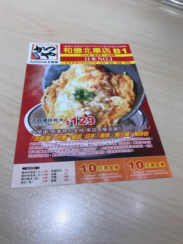 吉豚屋かつや 和億北車店 (台北) 網址: https://s.openrice.com/cHRSm02OGO600 地址: 台北中正區忠孝西路一段36號B1 電話: +886 +886223113318
