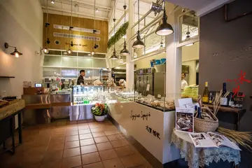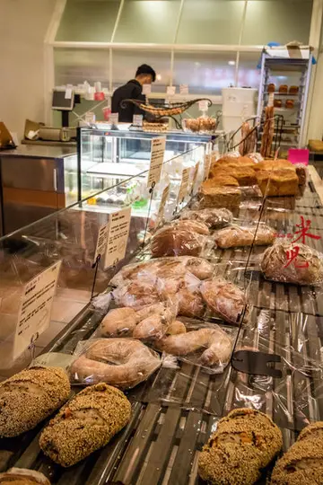 味覺的感動麵包坊是日本烘焙大師志賀勝榮來台做顧問的麵包店,店裡有製作麵包的區域且為半透明化廚房。而店裡的品項像是巧巴達、短棍、丹麥都表現不錯!由於造訪時間是:2015.9.14,所以價格與種類請以現場為主,謝謝。 前往「味覺的感動」麵包坊的方法:從捷運松山線南京復興站5號出口出站→全家便利商店,也就是第一個巷子右轉→直走→看到這藥局後往左轉,左手邊即是。 因為好朋友小瑜(blog:小瑜生活玩樂誌)分享資訊給我,才知道有這間當時開幕沒多久的「味覺的感動」麵包坊。外觀和這一區的感覺很不同,有帶點日式的味道,而且也許是被兩旁的高樓層建築夾在中間,讓我曾經很好奇這是什麼樣的店面,沒想到竟是麵包店。 店裡擺放了許多店裡所請的顧問-日本烘焙大師志賀勝榮的著作。 店裡很乾淨,並不會雜亂,麵包就位在兩旁,動線上也算順暢。 店裡就有製作麵包的工作區,所以我造訪的那日下午充滿了美味的香氣。 焦糖蘋果麵包 $120 這款價格和另一地瓜芝麻是我當日買的價格較高的兩款,但因為我個人本身比較偏好短棍、巧巴達、丹麥,所以這兩款比較不受我青睞,但其實地瓜芝麻那款不錯(撇開價格來看),這款我倒是覺得還好。名為焦糖蘋果但跟濃郁的焦糖醬是不一樣的風味,是外硬內軟的麵包裡包了糖煮蘋果丁。 地瓜芝麻麵包 $120雖然我覺得價格滿高的,不過後來發現這芝麻密集到讓我這密集恐懼症者有點驚恐的密集程度(開玩笑的XD),還有剝開後那柔軟的口感與滿滿的地瓜丁,算是料多豐富,口感還算不錯啦! 諾曼地丹麥 $60 丹麥口感很酥鬆但又不會油膩或是黏口,好吃! 大蒜短棍 $70 有別於一般吃過的大蒜麵包是用那種脆硬口感,這的內裡有Q軟趕,帶著清爽蒜香而不是台式的那種很重口味,確是很合我的喜好,也許是因為我本身很愛歐式麵包吧! 當時試營運期間滿額贈送的巧巴達麵包,口感很Q軟,咀嚼時總能感受到那麵香甜味,我很喜歡! 這樣吃下來,當日所購買的這幾種都挺不錯,而巧巴達、法國短棍與丹麥是我個人比較喜歡的品項,只是部份麵包的價格挺高的就是了!味覺的感動地址:台北市松山區敦化北路4巷56號/營業時間:11:00 - 19:00/電話:02-8771-8709歡迎加入追蹤斑比(Banbi217)FB粉絲團: https://www.facebook.com/banbi217G+: https://plus.google.com/112008183619378734945/postsinstagram: http://instagram.com/banbi217/Banbi斑比美食旅遊: https://banbi.tw/查看更多