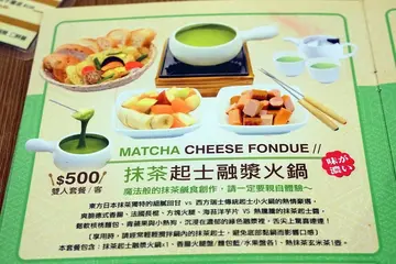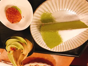 店的外觀很吸引人,日式和風的感覺~內用環境,在台北餐廳用餐坐起來都稍微擠一些布置都蠻有氣氛的2016菜單MENU蠻多種抹茶口味的蛋糕甜點抹茶戚風卷、千層蛋糕、起司蛋糕、玄米歐培拉提拉米蘇及生巧克力等把想要吃得寫在菜單上 除了蛋糕外,也有提供抹茶飲品咖啡...等 後面的菜單屬於抹茶冰淇淋聖代 跟 霜淇淋 或 單點 的選項我們點了兩套蛋糕套餐千層蛋糕 + 抹茶紅豆可麗餅卷 +霜淇淋 240元 提拉米蘇 + 抹茶泡芙 + 霜淇淋 250元 送上來我有點楞到!!!! @@"這個泡芙就像義美泡芙這麼小顆!!! (我以為他像外面的泡芙那樣大小....)拿手對比一下....泡芙應該可以做大顆一點吧!小點心真的非常的小阿!~~ 抹茶經典聖代 200元 視覺上看起來蠻不錯的台北的甜點價格大約落在200元左右總結:我覺得這家抹茶稍微甜一點 我個人比較喜歡桃園一抹綠或是辻利抹茶的口味 每個人喜歡不同風味的抹茶 但這家優點是可以吃到很多不同形式的抹茶甜點 價格有點偏高 或許看到網友吃過的評價可能讓我期待太高 個人心中吃過最好吃的抹茶 去過日本京都,隨意一家攤販都比台灣的好吃! 有機會出國到日本,一定要吃一支當地的霜淇淋 真的讓我非常難忘的好吃阿~~~這家店生意很好,所以用餐時間也有限制無法好好悠閒享受的下午茶有點可惜~ 好迷你的泡芙.....哈XD店內高朋滿座! 氣氛是蠻熱鬧的~