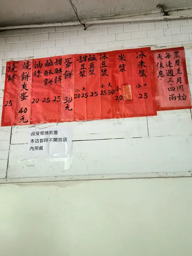 照片記錄:燒餅夾蛋40、蛋餅30、豆漿25。猶記得當年剛開始寫格記錄,某日清晨從Lab出來,騎著ㄅㄨㄅㄨ到附近的阜杭吃早餐,很近~而且下著雨也沒有排什麼隊,之後順手寫了食記,然後就有人留言表示,麟光站的和記豆漿更好吃,我一直記在心裡,過了這麼多年,總算可說是成就解鎖了嗎?和記的厚燒餅和阜杭不同路數,麵香很濃,就是老中式早餐才有的滋味,香脆度少、屬於吃嚼感的,Q勁餅皮的蛋餅也不錯吃,IG上的朋友告訴我,60歲以上會比較喜歡和記,未滿60應該還是阜杭,十分有趣的比喻。(雖寫著疫情影響,但仍可內用,桌子上放了很多雜物..)(看來我未滿60歲,喜歡蛋餅更多,挺ok的一頓早餐)本次經驗:(3.5個笑臉)…查看更多
