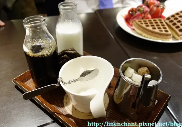 來到行程的第二天,依然貫徹著要hae要輕鬆的心情繼續周圍吃喝玩樂~第二天的第一餐,我們就來到位於忠孝敦化(詳細地址:台北市中正區館前路18號2樓)的咖啡弄食個Brunch~XD其實丫,咖啡弄在香港有分店應該是眾所周知的事啦~但Wing呢…..還沒有光顧過啦…原因就是人太多了…所以就來台這邊才吃啦=3=先是走一條樓梯啦~好快好快~~~我們急急腳的走上樓梯就到了~!!!!地方十分寬敞整潔啦,給人一種悠閒輕鬆的感覺~餐具也整齊的放在台面上啦~好啦….又是選擇困難症出現的時候啦,擾攘了好一陣子…終於揀好了想吃的啦~要記著喔,咖啡弄的最低消費是每人一杯飲料丫~~~~~玫瑰花草茶(NT$150)這個玫瑰花草茶的賣相很高分的啦,單憑這個雅緻的茶壺,已經讓Wing留下深刻的印象囉~焗一會兒以後把茶緩緩倒出,就已經聞到很香的玫瑰花味。沒錯,那是已經久遺了的味道。想當日在office內天天沖來喝的丫~~永遠都是喝畢整壺茶才知道,原來這個玫瑰花草茶的手料也蠻多的啦。說真的平日我自己沖一壺茶,用的玫瑰花數量一定比這個少的啦。桂圓紅棗茶(NT$160)這壺桂圓紅棗茶是意外的驚喜啦,還沒有去過咖啡弄的Wing一心以為桂圓紅棗茶只有茶,怎料滿滿都是桂圓、紅棗、杞子啦,比想像中的材料還要多呢~蒲端上台就已經聞到很香的桂圓紅棗茶味了,喝下的第一口就已經感到那滋潤感隨著食道進入消化道,很棒的啦,滋潤著這陣子乾燥得要命的Wing啦~黃金拿破崙千層派(NT$180)這個是每日限量發售的丫~看上去感覺這件千層派很小的,但又感覺很高貴的,可能是因為加上了金箔的緣故吧~切開一看見到其層層分明,吃下去嘛,有點點的芝士香氣,加上外層的杏仁脆片,就是外脆內軟的啦,愈食愈好味的說~草莓冰淇淋鬆餅(NT$185)接著就是大家常說來咖啡弄必點的草莓冰淇淋鬆餅啦,這個賣相滿分的啦。草莓很新鮮的啦,而家超甜的,加上雲呢拿雪糕以後,味道就是相輔相乘的,而且加上草莓醬,令草莓跟雪糕變得更香甜呢!!!至於鬆餅嘛,上面烘得脆卜卜的,鬆餅的下面是軟棉棉的啦,就是外脆內軟的,而且有夠厚的啦,用雙手拿著吃也可以的,點上草莓醬跟雪糕以後,更覺滋味呢~查看更多