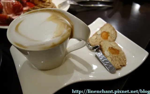跟同事吃完棻蘭家廚後,平常看似木訥的同事~居然提議徒步到附近的咖啡弄...媽啊~~我嚇到了!!!孩子都上國中的男同事...知道咖啡弄耶!!(我這傢伙真的很沒禮貌耶~~~哈哈哈!)冰滴咖啡(160元+10%)裡面有顆冰塊就是直接用咖啡做的,而且還做成咖啡豆的形容~~超可愛的啦!!! 特調芝麻冰咖啡(140元+10%)看到是新商品我就很想試試看了~~~哈~~結果跟我想像的完全不同啦!!上面那坨是滿滿的芝麻奶油,其實芝麻鮮奶油吃起來真的很香,而且還吃得到芝麻的口感~~不過因為對我來說這樣吃鮮奶油還是太匪類了,就算整個攪散在咖啡裡~~還是怕怕的啊!!!整體來說算是還不錯,不過我覺得把咖啡換成熱咖啡會更好!!(我印象中這款咖啡就只有冰的~~~建議有興趣的人可以再問問看唷~~)歐蕾咖啡(160元+10%)用玻璃瓶分別裝了咖啡&牛奶...瓶子非常燙所以還提供了塊布讓客人好拿...不過比起來我還是比較喜歡米朗琪咖啡館的這款咖啡,光是那個裝咖啡&牛奶的壺看了就加分啊!!!卡布奇諾咖啡(130元+10%) 草莓奶油鬆餅(180元+10%)招牌的草莓鬆餅一定要點的啦!!!不過因為現在草莓不適時節,所以進口的吃起來我真的沒有很愛~~加上在棻蘭家廚吃的超飽,鬆餅就交給同事們解決啦~~~ 黃金拿破崙千層派(170元+10%)看到這也是新上市限量款,哎唷~~腦波很弱的我又點了啦!!!看起來還搞不太清楚會走甚麼路線...同事比較好奇上頭那是真的金箔嗎??噗噗~~非常不好切開,因為裡面真的很厚實~~中間的部分吃起來就像是冰淇淋,派皮本身吃起來真的很酥~~口味上也還OK,但說實話並沒有讓我留下很深刻的印象~~只能說是個表現挺中規中矩的千層派嚕~~~大家都吃很飽所以除了低消飲料外點的並不多,這價位覺得挺便宜的啦~~ 來過咖啡弄很多次,也光顧了好幾個分店~~對我來說它的整體表現都很好,可是鬆餅的部份我還是最喜歡米朗琪咖啡館...不過其他部分咖啡弄就真的很讚嚕!!雖然現在下午茶店家越開越多,但這裡還是我不知道想吃甚麼時的好選擇啦~~~查看更多