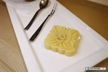 【品盛悅素軒-蔬食素食】是一間專做精緻創意蔬食素食料理的餐廳,台北的素食餐廳選擇還不少,品盛悅素軒就是其中一家瑪姬吃過留下深刻印象的台北素食餐廳,當時在一開幕不久就有幸到訪,沒想到多年後餐廳依然屹立不搖,而且挺過堅困的疫情衝擊;很開心在疫情趨緩後能和茹素的好友一同再訪,讓我再度回味這樣的好味道!【品盛悅素軒-蔬食素食】就位在捷運松江南京站靠近五號出口處,步行約一分鐘即可到達,若是想要搭電扶梯則需在四號出口,距離也相對會遠一些些。餐廳內的風格是呈現簡約沉穩的舒適用餐空間,白天有自然光線灑落,夜晚又能坐在窗邊欣賞車水馬籠的台北夜景。這一帶的公司行號很多,平日就有不少的上班族會來用餐,假日則是家庭或朋友聚會居多。這一區塊則是很適合多人用餐的空間,整潔雅緻且舒爽。店裡有四間獨立包廂,其中三間裡面有投影設備可使用,亦可打通做使用,約可容納10~60人的空間,每間獨立包廂低消是一萬元。店裡也有一些包裝雅緻大方的禮盒,像是茶品和自製的猴菇辣醬,都是送禮自用兩相宜的好物。入座後服務人員送上菜單和奉茶,餐廳主打精緻創意素食套餐,詳細菜單內容請參考品盛悅素軒-蔬食素食官網。餐廳內提供了明日葉茶做為迎賓的茶品,這款茶品喝起來清新舒爽而潤喉,主要是草本植物,富含多種有益人體的營養素,且無咖啡因,是一款健康茶品,而且可以無限暢飲哦!瑪姬和好友都點了店裡的人氣套餐初韻,套餐單價980元,另加一成服務費。首先登場的是初韻套餐裡的典藏臻品,三道由主廚精心調製的爽口開胃小菜,從視覺上就先給人一種開啟味蕾的色彩感官,一眼望去都是我平常就愛吃的蔬食料理。從右邊這道名為天貝的料理,是由大豆和黃豆混合去香煎而成,入口滿是豆香和鍋邊的香氣在口中漫開,外層帶有些許脆口,內層又綿密而有層次的一道美食。和風胡麻龍鬚菜是平常瑪姬也很愛的料理,細緻幼嫩的龍鬚菜川燙後再拌入和風胡麻醬,香氣撲鼻而來,在咀嚼中又有芝麻顆粒的口感,愛極這道和風蔬食。梅香南瓜是一道瑪姬極力推薦的開胃涼菜,主廚將南瓜切成約0.2公分的薄片,在用梅粉醃漬一夜入味,嚐起來滿是梅子的甘甜和南瓜的脆口,這道菜吃完後讓人胃口大開,想敲碗接著品嚐下一道好菜!這道菜也讓瑪姬興起自己動力做的念頭,隔天立馬去買了南瓜和梅粉,自己在家也能吃得到好吃的料理。極品何首烏一聽就是讓人期待的湯品,裡面有兩顆大核桃,在喝湯的同時也感受到堅果的香氣和口感。湯裡用了多種中藥材去熬煮多時,入口驚人的甜味全是用大量的枸杞和紅棗所釋放的甘甜,甘而順口的味道,加上適當的溫度,這碗湯喝下去整個讓人元氣滿滿!而且沒有中藥的苦澀味,讓年輕人接受度也很高。焗烤勃根地蕈菇是一道奶素的料理,作法像極了法式的焗烤田螺,香濃的奶香起司在焗烤後更香更濃郁,瑪姬可是全部吃得一干二淨,清潔溜溜呢!旁邊是墨西哥捲餅,裡面有生菜、起司、蕃茄和日本茄子,建議要先品嚐捲餅,防止皮軟化後影響到風味。油醋洋菇是全素的料理,讓全素食者若不能食用焗烤勃根地蕈菇時的另一個選擇。清爽有味但不嗆口的油醋醬恰到好處,底部還有黑芝麻醬和七味粉,帶來口感更豐富的層次感,再搭配香煎後的洋菇,整體亦是一道美味蔬食。鄕村青蔬以時令的色彩繽紛蔬菜,佐上黃芥末醬,簡單又美味的一道料理。巴黎香榭猴菇排,光聽這個名字就讓人有在品嚐法式西餐的感覺了,加上擺盤如花園般的精緻點綴,這樣的排場就很有氣勢!要製作這道猴頭菇排得費時三天工時,先得用活水將猴頭菇的腥味去除,第二天再泡入蛋液和醬汁去醃製入味,第三天就等得客人點菜後,將醃製好的猴頭菇以半煎半炸再烤過,歷時40分鐘的烹調並淋上猴菇醬才端上桌。要切開來這顆猴頭菇也費了點力氣,因為它非常紮實,搭配的猴菇醬是美味的關鍵!除了猴頭菇在調理過後散發出的香氣外,醬汁帶來的濕潤度可中和紮實的彈脆口感,會更好入口;難怪這是一道人氣招牌菜,讓難得吃素食的朋友也嚐到素食的功夫菜。旁邊還搭配香煎的杏鮑菇佐芒果醬,另一邊的有機蔬菜則是搭配紅色的甜菜根醬一起食用。松露蘑菇燉飯送上桌時擺盤也一樣吸引我的目光,和一般燉飯不同的是它的形狀呈現圓柱型,若不是聽到菜品的名稱,還會懷疑是什麼樣的特殊料理呢!松露燉飯在許多西餐廳裡可說是相當常見的美食,而餐廳的主廚用了大量黑松露下去熬煮,並和蘑菇的香氣融合在一起,風味更顯濃厚,入口就感受到大量松露帶來的奢華享受;好久沒能這讓品嚐美食帶來的滿足感,隨著疫情趨緩,生活逐漸正常後,希望可以隨時都吃到美味的達人料理。從燉飯的色澤中可見主廚在黑松露的使用上毫不手軟,我喜歡松露和洋菇搭配起來的絕佳滋味!在燉飯的口感上是偏軟的,也使得黑松露的味道完全滲入米芯中。果香風味醋酸香甘甜,在正餐用畢後喝下它,可清除口中的餘味,也進入到甜點的階段。水晶桂花香膨露搭配雪藏綠豆糕,在菜單上看到這道甜點時就滿心期待了,除了綠豆糕外,水晶桂花香膨露也是我心頭數一數二的甜品。水晶桂花香膨露有著濃郁的桂花清香,聞之讓人心情愉悅安定,滑溜入口的膨露有著像果凍的口感,是冰涼甜蜜的一道好吃甜品。瑪姬嚐過口感相當綿密入口即化的綠豆糕,因此對這道甜點的期望值很高,這裡的綠豆