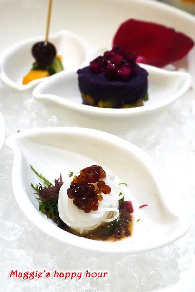【品盛悅素軒-蔬食素食】是一間專做精緻創意蔬食素食料理的餐廳,台北的素食餐廳選擇還不少,品盛悅素軒就是其中一家瑪姬吃過留下深刻印象的台北素食餐廳,當時在一開幕不久就有幸到訪,沒想到多年後餐廳依然屹立不搖,而且挺過堅困的疫情衝擊;很開心在疫情趨緩後能和茹素的好友一同再訪,讓我再度回味這樣的好味道!【品盛悅素軒-蔬食素食】就位在捷運松江南京站靠近五號出口處,步行約一分鐘即可到達,若是想要搭電扶梯則需在四號出口,距離也相對會遠一些些。餐廳內的風格是呈現簡約沉穩的舒適用餐空間,白天有自然光線灑落,夜晚又能坐在窗邊欣賞車水馬籠的台北夜景。這一帶的公司行號很多,平日就有不少的上班族會來用餐,假日則是家庭或朋友聚會居多。這一區塊則是很適合多人用餐的空間,整潔雅緻且舒爽。店裡有四間獨立包廂,其中三間裡面有投影設備可使用,亦可打通做使用,約可容納10~60人的空間,每間獨立包廂低消是一萬元。店裡也有一些包裝雅緻大方的禮盒,像是茶品和自製的猴菇辣醬,都是送禮自用兩相宜的好物。入座後服務人員送上菜單和奉茶,餐廳主打精緻創意素食套餐,詳細菜單內容請參考品盛悅素軒-蔬食素食官網。餐廳內提供了明日葉茶做為迎賓的茶品,這款茶品喝起來清新舒爽而潤喉,主要是草本植物,富含多種有益人體的營養素,且無咖啡因,是一款健康茶品,而且可以無限暢飲哦!瑪姬和好友都點了店裡的人氣套餐初韻,套餐單價980元,另加一成服務費。首先登場的是初韻套餐裡的典藏臻品,三道由主廚精心調製的爽口開胃小菜,從視覺上就先給人一種開啟味蕾的色彩感官,一眼望去都是我平常就愛吃的蔬食料理。從右邊這道名為天貝的料理,是由大豆和黃豆混合去香煎而成,入口滿是豆香和鍋邊的香氣在口中漫開,外層帶有些許脆口,內層又綿密而有層次的一道美食。和風胡麻龍鬚菜是平常瑪姬也很愛的料理,細緻幼嫩的龍鬚菜川燙後再拌入和風胡麻醬,香氣撲鼻而來,在咀嚼中又有芝麻顆粒的口感,愛極這道和風蔬食。梅香南瓜是一道瑪姬極力推薦的開胃涼菜,主廚將南瓜切成約0.2公分的薄片,在用梅粉醃漬一夜入味,嚐起來滿是梅子的甘甜和南瓜的脆口,這道菜吃完後讓人胃口大開,想敲碗接著品嚐下一道好菜!這道菜也讓瑪姬興起自己動力做的念頭,隔天立馬去買了南瓜和梅粉,自己在家也能吃得到好吃的料理。極品何首烏一聽就是讓人期待的湯品,裡面有兩顆大核桃,在喝湯的同時也感受到堅果的香氣和口感。湯裡用了多種中藥材去熬煮多時,入口驚人的甜味全是用大量的枸杞和紅棗所釋放的甘甜,甘而順口的味道,加上適當的溫度,這碗湯喝下去整個讓人元氣滿滿!而且沒有中藥的苦澀味,讓年輕人接受度也很高。焗烤勃根地蕈菇是一道奶素的料理,作法像極了法式的焗烤田螺,香濃的奶香起司在焗烤後更香更濃郁,瑪姬可是全部吃得一干二淨,清潔溜溜呢!旁邊是墨西哥捲餅,裡面有生菜、起司、蕃茄和日本茄子,建議要先品嚐捲餅,防止皮軟化後影響到風味。油醋洋菇是全素的料理,讓全素食者若不能食用焗烤勃根地蕈菇時的另一個選擇。清爽有味但不嗆口的油醋醬恰到好處,底部還有黑芝麻醬和七味粉,帶來口感更豐富的層次感,再搭配香煎後的洋菇,整體亦是一道美味蔬食。鄕村青蔬以時令的色彩繽紛蔬菜,佐上黃芥末醬,簡單又美味的一道料理。巴黎香榭猴菇排,光聽這個名字就讓人有在品嚐法式西餐的感覺了,加上擺盤如花園般的精緻點綴,這樣的排場就很有氣勢!要製作這道猴頭菇排得費時三天工時,先得用活水將猴頭菇的腥味去除,第二天再泡入蛋液和醬汁去醃製入味,第三天就等得客人點菜後,將醃製好的猴頭菇以半煎半炸再烤過,歷時40分鐘的烹調並淋上猴菇醬才端上桌。要切開來這顆猴頭菇也費了點力氣,因為它非常紮實,搭配的猴菇醬是美味的關鍵!除了猴頭菇在調理過後散發出的香氣外,醬汁帶來的濕潤度可中和紮實的彈脆口感,會更好入口;難怪這是一道人氣招牌菜,讓難得吃素食的朋友也嚐到素食的功夫菜。旁邊還搭配香煎的杏鮑菇佐芒果醬,另一邊的有機蔬菜則是搭配紅色的甜菜根醬一起食用。松露蘑菇燉飯送上桌時擺盤也一樣吸引我的目光,和一般燉飯不同的是它的形狀呈現圓柱型,若不是聽到菜品的名稱,還會懷疑是什麼樣的特殊料理呢!松露燉飯在許多西餐廳裡可說是相當常見的美食,而餐廳的主廚用了大量黑松露下去熬煮,並和蘑菇的香氣融合在一起,風味更顯濃厚,入口就感受到大量松露帶來的奢華享受;好久沒能這讓品嚐美食帶來的滿足感,隨著疫情趨緩,生活逐漸正常後,希望可以隨時都吃到美味的達人料理。從燉飯的色澤中可見主廚在黑松露的使用上毫不手軟,我喜歡松露和洋菇搭配起來的絕佳滋味!在燉飯的口感上是偏軟的,也使得黑松露的味道完全滲入米芯中。果香風味醋酸香甘甜,在正餐用畢後喝下它,可清除口中的餘味,也進入到甜點的階段。水晶桂花香膨露搭配雪藏綠豆糕,在菜單上看到這道甜點時就滿心期待了,除了綠豆糕外,水晶桂花香膨露也是我心頭數一數二的甜品。水晶桂花香膨露有著濃郁的桂花清香,聞之讓人心情愉悅安定,滑溜入口的膨露有著像果凍的口感,是冰涼甜蜜的一道好吃甜品。瑪姬嚐過口感相當綿密入口即化的綠豆糕,因此對這道甜點的期望值很高,這裡的綠豆