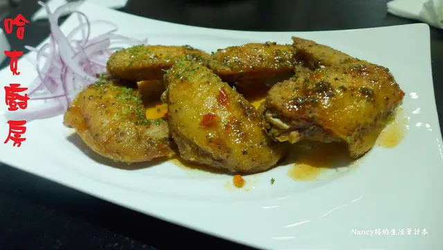 前幾天經過的時候覺得它好面熟 距離上一次吃已經超過一年了耶!! 看到店門口的小黑板上寫著.. 商業午餐升級套餐 + 20元就有麵包、湯、飲料 真的是太划算了啦!!! 以黑、白為主的裝潢 陽光灑進來顯得格外明亮 牆上的畫都好漂亮喲!! 連相框都精心挑選呢!! 旁邊這 2 桌都是女孩們的聚餐 右邊是 2 個媽媽各自帶著女兒來享用下午茶 店內的兒童座椅跟外面看到的不太一樣 往樓下的樓梯轉角處 這個下樓讓人無法只有專心走路 因為有好多可愛的裝飾 洗手間也太夢幻了 還有一些溫馨的壁貼 Menu 哈克廚房..滿足您的每一個味蕾 前菜、沙拉、湯、飯、麵、烤餅、牛排、帕尼尼 不管是早午餐、下午茶或是晚餐 餐點有很多選項..超適合約朋友聚餐呢!! 蜂蜜辣醬雞翅 NT 150 元 這道炸雞翅是上次來也有點過的 因為太好吃了..所以這次還想再點 沒有外層多餘的裏粉..仍然薄脆 有蜂蜜的香甜 + 微微辣 鮮嫩多汁..超開胃!!! 明太子干貝麵 NT 400 元 超大顆的北海道干貝 就已經讓輕盈寶寶睜大雙眼..哇~~~~ 香濃的白醬搭配依附在麵條上的明太子 充滿海味的鮮甜..而且干貝好 Q 彈啊!! 鮮蝦起司烤薄餅 NT 280 元 蘑菇、洋蔥、鮮蝦搭配法式鄉村醬 加上厚厚的查特起司 + 帕馬森起司 底下的薄餅薄得比餅乾還要薄耶!!! 用料大方又實在 吃得到香濃的起司還有 QQ 的鮮蝦 哈克的 pizza 是少數輕盈寶寶會乖乖把 pizza 邊邊吃掉 因為邊邊好薄好脆..有意猶未盡的感覺呢!! 王子說..我一個人就可以吃一整個囉!! 青醬海鮮燉飯 + 50 升等焗烤 NT 380+50 元 三個好大的淡菜就排排站在旁邊 焗烤上面撒的是松子耶!! 薄薄一層起司焗烤 好香好濃的起司味啊!!!! 起司跟青醬真的好搭喔!!! 還有新鮮整隻的蝦蝦、花枝 海鮮沒有過熟..還保有 Q 彈的口感 香蕉草莓舞曲 NT 240 元 用料真的非常實在 可以明顯的感受到香蕉跟草莓在口中跳舞 真的狠香又狠濃的奶昔..好好喝喲!!! 曼波水果茶 NT 180 元 哈克廚房使用的是德國 D & B 有機的花草茶喲!! 裡面有:洛神花、蘋果乾、木瓜、接骨木果 黑醋栗、藍莓、草莓、向日葵、矢車菊 茶的顏色是鮮紅明亮的..微微的酸甜 聞起來是香甜的水果味 但喝了才發現其實沒有加糖 喜歡甜一點的朋友旁邊都有附糖包可以自己加喲!! 很適合在飯後喝..可以去油解膩 第二次造訪哈克廚房還是很滿意值得推薦 "輕盈寶寶FB粉絲專頁https://www.facebook.com/princessyabe"…查看更多