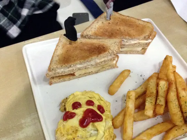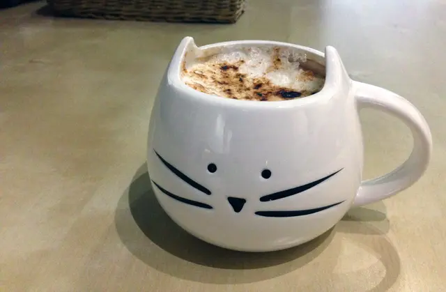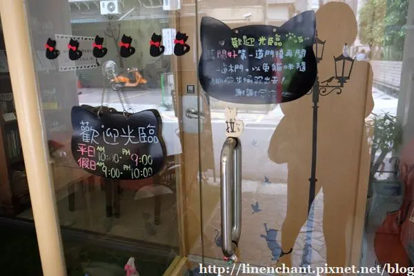 露西身邊有好多愛動物的朋友,這天揪了愛貓咪的好姊妹夏綠蒂,來到台北小有名氣的貓咪友善餐廳 喵吧咖啡廳;這間咖啡廳今年4月才剛上過Taipei Walker的介紹喔電話訂位時,老闆娘還細心地說明如何自捷運站走到咖啡廳,讓露西一開始就對喵吧留下了好印象啦(老闆娘聲音好溫柔~)!!!!捷運南京三民站1號出口走路約5分鐘,看到這塊小而美的立牌就到囉~店外有一隅戶外座位區,綠油油草地和木編籐椅,如果天氣涼快(也沒有蚊子)的時候,坐在外面很不錯耶喵吧的小心機處處可見,為了防止靈活的貓兒跑出店外,是有雙重門設計呢!!!!大家進入或是離開時要小心注意有沒有貓咪的蹤跡唷!!!!進入第一扇玻璃門後,店家備有貼心滾輪和酒精清潔,準備好就可以來逗貓囉!!!!!I AM READY!!!!!以下有不少環境和貓咪照,只想著重餐點的話可以滑大力一點~~進到店裡後,最先入眼的就是這不規則的小隔板區啦!!!!讓貓咪大哥大姐們悠閒自在地伸展筋骨~牆上還有不少名人簽名。愛貓咪的小玩意,也是讓貓兒可以爬上爬下囉!!!!!左側寫上店裡的七隻花名還有年齡,迫不及待看到他們啦~店家小叮嚀,希望大家能一起幫忙讓貓咪養成專心吃飯好習慣唷~店裡的光是比較幽暗些,因為貓咪是夜行性動物?(露西亂揣測的啦~),不過不會很暗,是看得清楚自己手指頭有幾根的喔!!!p.s 週末下午店內生意超好,建議有意前往還是先訂位噢。桌角用不織布閃亮亮拼貼出桌號,童趣處處可見好店三寶:wifi、插座、不限時在這都有喔~店內的菜單也好可愛啊~~~這地方是愛貓族的天堂吧!!!!第一頁寫上喵吧咖啡廳的提醒喔,遵守規定才是好寶寶!!!!詳細菜單請見文末除了菜單的餐點外,每天有各式的蛋糕可以選擇~露西和夏綠蒂點了一份美味套餐(+$60,附餐四選二),今天的例湯是巧達濃湯~~~最重要的不是湯本身,是上面的貓型餅乾,太太太可愛的了吧!!!!!這麼可愛的造型餅乾怎麼捨得吃掉它啦巧達濃湯喝起來頗濃郁,不會喝到粉粉的廉價感~裡面的用料很實在,一匙撈起都是火腿丁、玉米和洋菇哩!!!一人一杯的飲料來囉!!!!記得要點熱飲才會用這種貓咪馬克杯噢!!!!黑貓白貓都是好貓,擺在一起未免也太可愛了(不免又是一番尖叫~)只不過兩個手把都在同一邊好像怪怪的,拍照起來有點不順~感覺手把應該要各一邊擺起來更可愛????(整個要求很多)白貓是Meow Bar 奶茶($120),跟普通奶茶不同,這可是有厚厚奶泡的唷~濃醇的茶香和打至綿密的奶泡(也是貓咪形狀),溫溫入喉,好喝!!!!黑貓是烤拿鐵($130),外型超像是咖啡版的烤布蕾,其實就是熱拿鐵製成後再用火槍烤出美麗焦痕,喝起來比一般的拿鐵咖啡味道再厚重一些,這款也不錯~喵吧咖啡廳的新品亮相,煙燻牛肉起士可頌($180),不只有一份大型可頌,還附上歐姆蛋和薯條,CP值蠻高的唷注意!!!!喵吧的喵咪真的無所不在,連將可頌串起的小叉子都有用心~看起來有點驕傲的黑貓造型好Q歐姆蛋上的番茄醬也是貓掌的可愛造型,老闆不要讓我們這麼開心啦~~很推薦店家的美味歐姆蛋,吃起來軟嫩之餘,裡面還包有新鮮蘑菇,濃濃的蛋液裡飄著菇類香氣,再沾點番茄醬,美味極哩!!!副食脆薯也不馬虎喔,份量兩個人吃都ok!!!!薯條的外層炸得很乾、帶點微硬,不過裡面的馬鈴薯很燙嘴,也不錯~打開可頌的血盆大口,一片、兩片、三片四片的煙燻牛肉乍現!!!!四片完整的嫩嫩煙燻牛在美乃滋和起士的調教下,滋味棒棒~~露西個人很愛這款烤的熱熱、有層層酥皮的可頌麵包,包著有誠意的牛肉和清爽生菜,來這裏也能吃到美味又飽足的鹹食唷!!!!原味鬆餅加上自製冰淇淋的喵吧鬆餅($120)。這盤的可愛程度真的是女神等級啊~每一處細節都古錐啦!!!!不只是單純的鬆餅和冰淇淋,連脆迪酥、糖果和OREO都有哩!!!!棉花糖上用巧克力醬和焦糖醬點綴出貓掌形狀,老闆手好巧啊~~切成四等分的鬆餅上灑滿紅黃白交錯的棉花糖粒和巧克力醬唷,另外中間是兩球店家自製的香草冰淇淋,濃郁奶味還OK!!!而且這份鬆餅有多種吃法喔,可以單吃原味、也可以沾著鮮奶油、冰淇淋或是淋上蜂蜜醬都行!!!!一餅多吃啦拿起一片先單吃原味,這份鬆餅像是待在撒哈拉沙漠住很久的感覺,吃起來有點太乾!!!!而且好堅硬,不是很好入口消化哩~~因為真的太乾啦,還是建議沾點冰淇淋或是蜂蜜醬稍微平衡一下,不過還是真的很乾口啦~要是能鬆軟些會更符合這一百分的外表啊~套餐加價的手工自製布丁,貓掌形狀再現~連湯匙都有心機的腳印!!!!不過布丁吃起來味道有點稀,露西是喜歡蛋香再多一些的啦~吃飽喝足後來跟貓咪玩吧,這隻是票選外貌第一的愛莎~很乖又很親人,很喜歡人家摸摸牠噢店裡年紀最大的花媽很愛翻肚,和夏綠蒂玩得不亦樂乎~店貓們到處和客人們打招呼、跳上跳下的景象讓整間店好有生氣,感覺店裡有不少熟客,都主動地幫貓咪們按摩,好幸福的畫面啊~最後附上店裡的完整菜單---從簡餐、義大利麵、三明治、甜點和飲品都有!!!對了,是否有人跟露西一樣都很想知道店家是否有在賣可愛的貓咪馬克杯?答案來囉~請多多來喵吧玩集點遊戲!!!!凡是消費300元可享有一點,湊滿十點換一個馬克杯!!!!露西已經摩拳擦掌、發下宏願決定要得到他囉~~所以應該很快就會再來啦哇哈哈近年來貓咪餐廳越開越多,每次造訪都讓人覺得台灣是個有愛的地方啊~喵吧咖啡廳也不例外,從店內布置、小叮嚀和人員的用心,都可以看出店家是真心熱愛小動物,對貓咪的愛