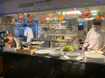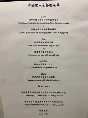 20191205我的第601篇文章!從美國出差回來一趟後 深深覺得台灣的牛排比較好吃尤其是肋眼!趕在聖誕節前來一趟我最愛的圓山牛排館沒想到居然有聖誕雙人套餐 雖然我一向衷情於圓山牛排館CP值超高的肋眼牛排套餐(中午1000初頭而已!)但聖誕雙人套餐可以有海陸選擇 每種都可以嚐到 我們是3個人 所以點了一個雙人套餐跟單點套餐 真的聖誕節快到了 裡裡外外都有聖誕裝飾照慣例 圓山牛排館是semi buffet 開胃菜、生菜沙拉、甜點和水果都可自助形式也可無限取用的 開胃前菜的buffet常常會換菜色 今天是豐澎湃的西班牙生火腿、香腸、臘腸等等在國外吃的話都好貴喔 生菜沙拉的配料 好多橄欖喔 生菜還是一樣很豐富、很多色彩也很健康 開胃冷菜又一道 雞肉彩椒 清爽又好吃 而且應該也很健康吧 [餐前麵包] 用了一點開胃菜後 開始上菜囉 麵包有不同口味 如果吃不完也可以打包 [烤酥皮藍紋乳酪野菇田螺派(雙人套餐附] 這是雙人套餐有的開胃前菜 點雙人套餐的二人都會有喔這個看起來就好高級喔 酥皮好香好酥 而且有我超愛的乳酪 感覺也是個手工菜 [燻鮭魚籚筍塔塔佐茴香蛋黃醬汁(雙人套餐附)] 開胃菜有兩種可以選擇 燻鮭魚也是清爽好吃 [燻煮義式蕃茄蔬菜湯] 無論是雙人餐或單人套菜 都會有湯品喔 [拌炒銀魚米形麵佐綠蓉醬(雙人套餐)] 雙人套餐好豐富喔 還會有一小份pasta而且感覺也很不簡單耶 這米形麵好特別喔很有口感 拌炒綠蓉醬也很夠味 [海陸雙重奏] 超豪華的雙人主餐 而且分配的很好 特選肋眼牛排、大蝦、比目魚都各有兩份每一種都好好吃完全不會有取捨的困難 還有烤蕃茄、烤菇、杏胞菇等等吃到一整個很過癃 [烤美國肋眼牛排搭配海塩芥末 (單人牛排套餐價1200元)]另外這是我們另外點的單人肋眼套餐嘖嘖嘖看這油油亮亮的感覺真的要牛排肉質本身夠好 微烤到5分熟就很好吃了超嫩又juicy 飯後甜點吧也是自行取用無限制 蛋糕 法式軟糖 生巧克力 手工餅干我自己覺得 主菜是主角 飯後甜點不需要太多 吃一點點甜甜的做為ending就好 搭配甜點當然還需要咖啡囉 聖誕節也有薑餅屋的裝飾耶 半開放式的廚房 廚師們都好專注喔附上菜單 給大家參考 雖然聖誕節過了但我想每到重要節日 圓山還是會推出類似的雙人套餐可以給大家先參考看看 附上之前的圓山牛排館食記20190605@台北圓山牛排館 超高CP值吃高檔牛排 20190412@台北圓山牛排館 非牛料理也不錯 20171227@台北 圓山牛排館 隱藏版的和牛菜單 走過路過 也請來萬的粉絲團按個讚 交個朋友吧 美食是努力工作的附產品 圓山牛排館台北市中山區中山北路四段1巷1號 02 2886 8888…查看更多