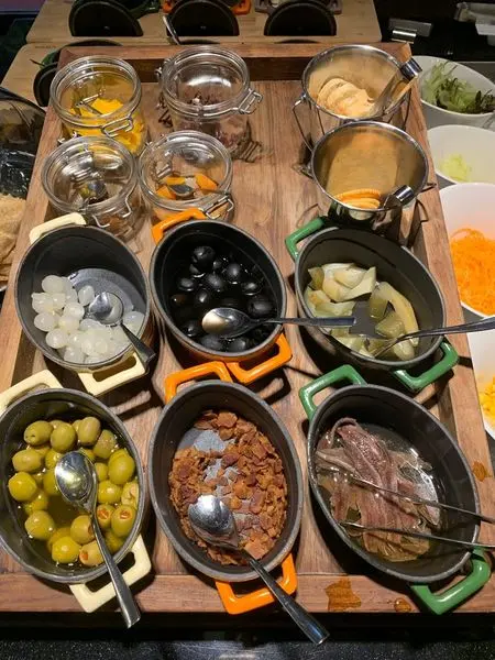 20191205我的第601篇文章!從美國出差回來一趟後 深深覺得台灣的牛排比較好吃尤其是肋眼!趕在聖誕節前來一趟我最愛的圓山牛排館沒想到居然有聖誕雙人套餐 雖然我一向衷情於圓山牛排館CP值超高的肋眼牛排套餐(中午1000初頭而已!)但聖誕雙人套餐可以有海陸選擇 每種都可以嚐到 我們是3個人 所以點了一個雙人套餐跟單點套餐 真的聖誕節快到了 裡裡外外都有聖誕裝飾照慣例 圓山牛排館是semi buffet 開胃菜、生菜沙拉、甜點和水果都可自助形式也可無限取用的 開胃前菜的buffet常常會換菜色 今天是豐澎湃的西班牙生火腿、香腸、臘腸等等在國外吃的話都好貴喔 生菜沙拉的配料 好多橄欖喔 生菜還是一樣很豐富、很多色彩也很健康 開胃冷菜又一道 雞肉彩椒 清爽又好吃 而且應該也很健康吧 [餐前麵包] 用了一點開胃菜後 開始上菜囉 麵包有不同口味 如果吃不完也可以打包 [烤酥皮藍紋乳酪野菇田螺派(雙人套餐附] 這是雙人套餐有的開胃前菜 點雙人套餐的二人都會有喔這個看起來就好高級喔 酥皮好香好酥 而且有我超愛的乳酪 感覺也是個手工菜 [燻鮭魚籚筍塔塔佐茴香蛋黃醬汁(雙人套餐附)] 開胃菜有兩種可以選擇 燻鮭魚也是清爽好吃 [燻煮義式蕃茄蔬菜湯] 無論是雙人餐或單人套菜 都會有湯品喔 [拌炒銀魚米形麵佐綠蓉醬(雙人套餐)] 雙人套餐好豐富喔 還會有一小份pasta而且感覺也很不簡單耶 這米形麵好特別喔很有口感 拌炒綠蓉醬也很夠味 [海陸雙重奏] 超豪華的雙人主餐 而且分配的很好 特選肋眼牛排、大蝦、比目魚都各有兩份每一種都好好吃完全不會有取捨的困難 還有烤蕃茄、烤菇、杏胞菇等等吃到一整個很過癃 [烤美國肋眼牛排搭配海塩芥末 (單人牛排套餐價1200元)]另外這是我們另外點的單人肋眼套餐嘖嘖嘖看這油油亮亮的感覺真的要牛排肉質本身夠好 微烤到5分熟就很好吃了超嫩又juicy 飯後甜點吧也是自行取用無限制 蛋糕 法式軟糖 生巧克力 手工餅干我自己覺得 主菜是主角 飯後甜點不需要太多 吃一點點甜甜的做為ending就好 搭配甜點當然還需要咖啡囉 聖誕節也有薑餅屋的裝飾耶 半開放式的廚房 廚師們都好專注喔附上菜單 給大家參考 雖然聖誕節過了但我想每到重要節日 圓山還是會推出類似的雙人套餐可以給大家先參考看看 附上之前的圓山牛排館食記20190605@台北圓山牛排館 超高CP值吃高檔牛排 20190412@台北圓山牛排館 非牛料理也不錯 20171227@台北 圓山牛排館 隱藏版的和牛菜單 走過路過 也請來萬的粉絲團按個讚 交個朋友吧 美食是努力工作的附產品 圓山牛排館台北市中山區中山北路四段1巷1號 02 2886 8888…查看更多