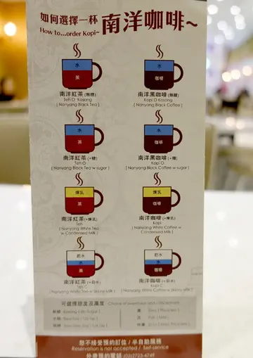 最近一直很想要吃吃南洋料理,而TOAST BOX土司工坊也是我看很久一直想來不過到信義區其實都吃飽了,所以終於把時間空出來吃這美味的南洋風料理!!!店家在信義威秀的一樓比較後面的一區塊,我覺得在這邊感覺會比較清幽一些,靠近百貨的前面一些會有些雜亂!整間店的風格非常乾淨明亮,主要是英國殖民時代的風格為主我覺得非常的寬敞,座位還算蠻多的且沒有時間限制,也不收服務費令人感覺真的很棒!各牆面上都有英國殖民時代的照片,若有機會可以慢慢欣賞我覺得挺漂亮、有特色的!飲品的製作都在這邊,點餐則在右側的地方還有販售咖椰醬 150元/罐這邊的咖啡和紅茶系列都是手沖的,非常需要技巧且那手沖壺真的好重啊!菜單如下可以參考一下!這邊的餐點的醬料是從新加坡空運來的,且所有餐點皆是現做的所以都需要等待!椰糖特飲 120元我本身最喜歡有關椰子有關的食物,所以當時看到這個就迫不及待想要點來喝喝看!底部的椰糖濃度很高需攪拌均勻在享用風味才剛好,我本身都是不喝甜的因此這甜度雖然偏高些不過能接受範圍內,我也是喝得很開心!點餐後會有個號碼牌,背面則是點用的餐點單據傳統咖椰吐司套餐 135元(搭配南洋熱咖啡+煉奶)蛋的方面可以請店員改成煎蛋也沒有問題,搭配上店家桌面上的醬料和灑上胡椒直接吃就很美味了,不過下圖我加的有些少!咖椰土司 (單點65元)咖椰醬的口感非常的特別,可以不時吃的到纖維、有著甜甜的椰香氣味,另外中間的含鹽奶油的微鹹氣味混合起來,鹹甜的滋味我覺得很特別我也很喜歡!不過我還是覺得這一份的價格似乎有一點點的高了些!南洋咖啡+煉奶 (單點冰95元/熱85元)我對於咖啡沒有深深的去研究,不過我不喜歡帶有酸味的咖啡,而在外面我曾喝過的南洋風味咖啡都是偏酸的氣味,所以我本來不太抱期望!不過這個一喝讓我覺得非常的順口,微微的甜度有濃郁的奶香氣味,越喝越好喝!肉鬆後土司套餐 135元(搭配南洋奶茶+煉奶)南洋奶茶+煉奶 (單點冰95元/熱85元)我本來其實是想要點用奶水,不過朋友推薦可以點用看看煉奶甜度不會很甜我們應該可以接受,當然我是很勇於嘗試的所以就決定來喝看看,錫蘭紅茶香氣非常的濃郁搭配上煉奶的奶香甜度混和後很剛好,我個人非常喜歡這一杯!肉鬆後土司 單點65元上方的肉鬆選用的是美珍香的肉鬆最後淋上煉奶,我認為這樣的搭配很有特色,鹹甜的口味覺得也不錯!雖然價格好像也覺得高了一點點!最後還帶了一罐咖椰醬回家,菠蘿油咖椰口味(單點) 90元店家的菠蘿我們覺得是比較偏向台式的,不過我個人喜歡鬆軟的口感,但是外皮帶一點酥酥的感覺,鹹甜的滋味帶著椰香氣息挺好吃的,價格上稍高!鴛鴦(咖啡奶茶) 熱85元/冰95元及自製薏米水 熱90元/冰95元鴛鴦一樣非常的濃郁,不過氣味上最濃郁的感受是咖啡,整體濃郁順口!自製薏米水微微的甜味,這可說是新加坡人愛喝的飲品之一,當然愛美的女生也知道吃吃薏仁會讓皮膚白皙!新加坡肉骨茶湯配河粉 280元不得不說這一碗真的很厲害呢,現做的在後方廚房所以等了一下下,當店員幫我們送上的時候我驚呼這個料非常的多且味道非常的香~滿滿的光看就覺得很滿足!!!果然一入口有驚艷的感覺,湯頭濃厚且會回甘呢!肉非常的鮮嫩好吃,此外裡頭還有金針菇和洋菇等等的料非常豐盛,河粉的份量也可以說挺多的,整體來說一碗非常的豐盛我也吃得很飽(吃不完還外帶),當天我非常喜歡這一道!黃薑雞肉飯套餐 250元薑黃飯裡的香料非常的多種,吃起來香氣十足口感也很棒,通常這道料理最受男生顧客的歡迎,我大概也知道為什麼了!不過這個涼拌的小菜品嘗起來甜甜的,吃的到鳳梨和蘿蔔微微的酸不過挺甜口的,我比較不習慣這樣的味道!這雞腿肉有些辣度,濃郁的香料味非常開胃口感軟嫩,當然配飯吃越吃越順口呢!新加坡炒粿條套餐 250元這算是最近推出的餐點沒有在菜單上面,不過我非常喜歡炒粿條、河粉類的餐點,因此就非常開心的點了下去!粿條的口感非常有彈性,且料也很豐盛很大一盤,不時吃到了臘腸、甜不辣、豆芽菜、蝦...等等的配料,口味鹹香夠味是我喜歡的南洋風味!我想我之後也會想要點用此道餐點當個午餐、晚餐!也會推薦愛吃乾炒的朋友這真的很不錯!其實我本來覺得是不錯的一間店,沒想到會讓我比不錯在往上加了好幾分,當天人雖然多不過還沒有到排隊(大概是天氣不好),但在真的很忙碌的時服務生臉上比較沒有笑容,但幫我們送餐的時也是面帶微笑的我覺得是感受不錯的,不過餐點好吃、空間舒適、服務也不錯,這就是我認為會想再光顧的原因了!查看更多