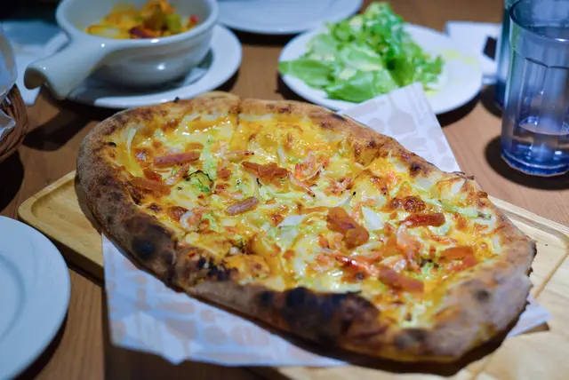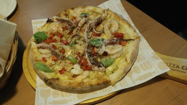 Ciao~~(義大利文的"你好") 蛋寶今天來到台北的一間義式料理咖啡廳,除了可以吃到正統的義式拿坡里pizza、烤飯,也是個喝下午茶的好場所,「Tino's Pizza Café 堤諾義式比薩(濟南店)」是一間主打正統的義式風味料理的餐廳,在pizza的製作與準備過程中更是用心,除了保留義大利傳統風味,還會選用不同的食材研發新口味來滿足大家的味蕾。所以,除了在台灣已設有多個據點,在中國、新加坡、馬來西亞也有門市。 Tino's Pizza Café 堤諾義式比薩(台北濟南店) 地址:台北市中正區濟南路二段69號 (新生南路、濟南路口) 交通:忠孝新生站5號山口,步行2分。 電話: 02-23581708 營業時間:周一至週日,11:00 - 21:30 官網Tino's Pizza Café 堤諾義式比薩(台北濟南店) ▼黑底白字的招牌,搭配門口大大的落地窗,讓經過的人都會忍不住往裡面看一眼。 ▼店門口前擺放著店內的料理廣告,歡迎大家"義"起來分享。 ▼店內裝潢採輕工業的設計風格,前方的點餐區吧台乾淨明亮,上方還有放置餐點看板。 ▼店內環境寬敞,桌數不少,有2~4人的人座的方桌,也有適合6~10人聚餐的大長桌。 ▼牆面掛著Tino's Pizza Café的介紹與義大利地圖,有原物料產地標示,匯集產出義大利西南部拿坡里風味Pizza。 ▼每個桌面上,都已擺好餐具、餐盤和菜單。 ▼調味料、水,可自行拿取使用。 【菜單】這裡的餐點有「義式比薩、小點、烤飯烤麵、薄餅、甜在心、飲品」,無論是正餐或下午茶都有合適的餐點可選擇。特別的是秋冬限定的"山脈系"的品項,餐點裡會放入山脈狀的鮮奶油,看起來特別又有氣勢!(詳細菜單可至官網查詢) 這是我們今天來體驗的品項。品項 內容 數量 義國旅程-美味體驗 海陸雙辣拿坡里比薩 各一份 牛肝菌菇山脈烤飯 義式魩仔魚烘蛋 綜合莓果甜星 地中海拿鐵 鮮葡萄柚冰沙 【海陸雙辣拿坡里比薩】滿滿餡料的熱騰騰pizza送上桌,香氣逼人~上面還撒上了芝麻葉,果然是道地的義式pizza做法,(又讓我想起了在義大利旅遊的時光)這道「海陸雙辣拿坡里比薩」是冬季的新品 8吋大的手工揉製烤做pizza裡,放入了滿滿的煙燻臘腸、鮮蝦、鮪魚、洋蔥,熱熱的拉起時,前端會有點牽絲~pizza餅皮經專業的500°高溫烘烤後,微帶焦香,外皮有厚度,鬆軟中帶Q彈感,慢慢咀嚼後還帶有麵粉香,能吃出在手擀麵糰手花了很多心血。 中間的配料,看似無害,卻香辣帶勁~有吃麻辣鍋的fu,整體的口感很不錯呢!!喜歡吃辣的朋友,必點!!(小插曲~~因店員看我們拍照花了很多時間,怕pizza冷了口感會不好,還主動的說要幫忙再回烤加溫一下,超貼心的!!) 【牛肝菌菇山脈烤飯】通常在義式餐廳,都只有燉飯或焗烤,很少看到有"烤飯",頂多是西班牙海鮮烤飯,而且,牛肝菌菇通常用於燉飯較多,變成"烤飯"就從來沒吃過了,所以看到菜單上有這品項時,讓我很心動!「牛肝菌菇山脈烤飯」是秋冬限定餐點之一,送上時,烤飯上居然有山脈狀的鮮奶油,這也是我第一次看到呢! 滿滿的薄片狀香菇、洋菇、杏鮑菇等綜合菇類,鋪滿鋪滿的在米飯上,還有烘烤過的蒜片點綴在上面,香氣四溢。店員告知我們,可適量的將所附的牛肝菌油擠出混入烤飯中,再將鮮奶油攪拌入米飯後食用。 混合後的烤飯口味濃郁,有牛肝菌的香氣、奶油的甜味,吃起來有點像義式燉飯的口感,但米飯較為緊實,不像燉飯溼軟,這個烤飯的口感我喜歡!會一口一口的吃完它。 【義式魩仔魚烘蛋】義式烘蛋,就是義大利式的蛋餅,在製作時會加入蔬菜或其它食材來搭配,變化出各種口味的烘蛋料理。這道「義式魩仔魚烘蛋」,除了有蛋的香氣,裡面的食材營養豐富,有魩仔魚、紅椒、馬鈴薯、花椰菜。 挖一口來吃,上層已烤的微酥香,裡面的烘蛋口感柔軟。 烘蛋的背面隱藏了好多綠色蔬菜,多咬幾下後青菜的甜味會釋出,味道算是比較清淡。 【鮮葡萄柚冰沙】這是一杯山脈系飲料,光看圖片顏值就很高,怎麼能不點來嚐鮮呢!這是用新鮮葡萄柚打成的冰沙,最上層是鮮奶油,中間還有一圈約3公分寬的葡萄柚果肉,下層則有葡萄柚冰沙。 ↓↓↓實品長這樣↓↓↓ 粉紅糖在灑在白色鮮奶油上,這顏色多美啊~~一片3公分厚的葡萄柚果肉塞爆杯子上緣,簡單又粗暴,網紅必點!~~冰冰涼涼微酸甜的葡萄柚滋味,真的是新鮮又好喝~此時,搭配海陸雙辣拿坡里比薩一同享用,還瞬間解辣,又爽口,整個超搭的!! 【地中海拿鐵】平常喝咖啡時也最愛點拿鐵了,但這杯拿鐵的顏色很特別,底層用藍柑橘果露,營造出藍藍的海洋渡假風,再加入鮮奶、濃縮咖啡,這樣的漸層感頗有地中海的浪漫風情,是一款很吸睛的拿鐵!!! 文青必點~~ 【綜合莓果甜星】看到這道甜點時,真心覺得名字取的真好!真的就是「甜在星」~8吋大的八角星星造型的pizza甜點,搭配白色的檸檬慕斯,再淋上藍莓、蔓越莓、野莓…等製成的莓果醬,完全讓人顛覆對pizza的想像,沒想到pizza也能變身成「吸晴甜點」! 切開後,莓果醬爆漿傾流而出~~太誘人了! Q軟的餅皮,搭配清爽的檸檬慕斯、酸甜的莓果醬,酸甜清新的滋味,非常的好吃!!!完全是道能擄獲少女味覺與視覺的甜點~~搭配咖啡超合適!!!! 下午茶時間,絕對要點一份來吃!!!! 推! 想吃這裡的餐點,卻沒有時間坐在這慢慢享用,沒關係,這裡也有提供外帶服務,讓你隨時隨地都能享受美味餐點! ~~蛋寶543~~蛋寶平常跟朋友聚餐約吃飯,最常選擇的就是義式料理的餐廳,這一次來到 「Tino's Pizza Café 堤諾義式比薩(濟南店)」用