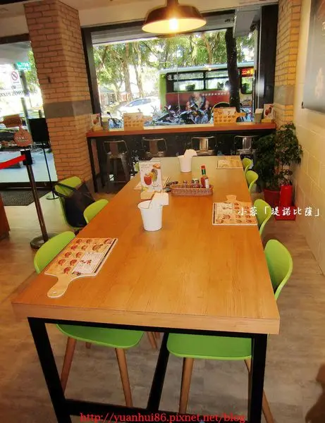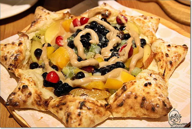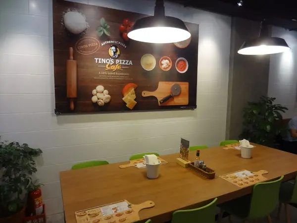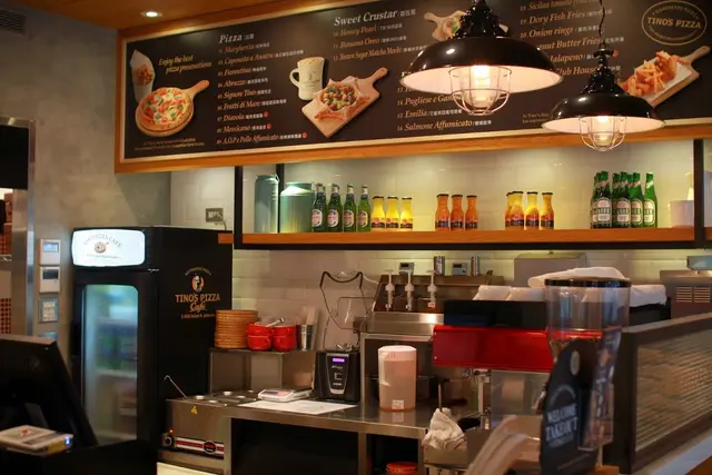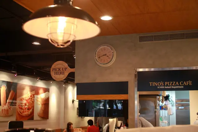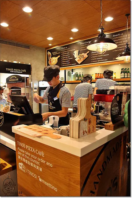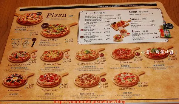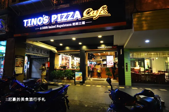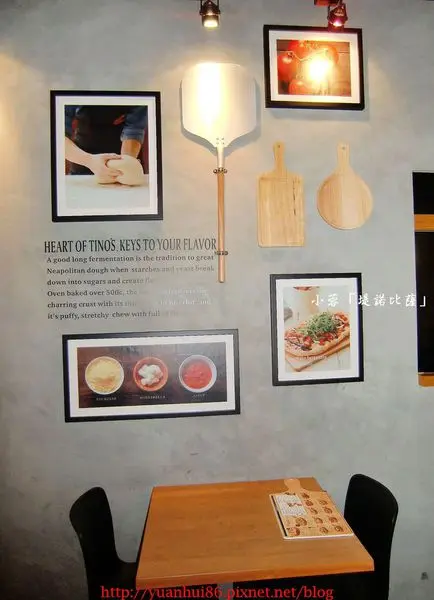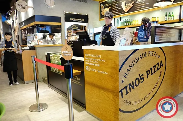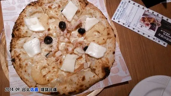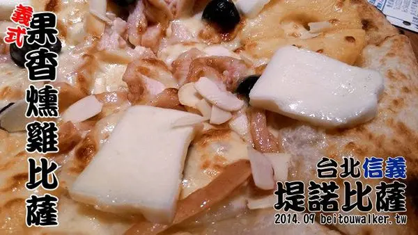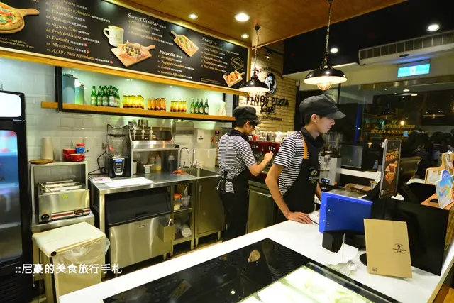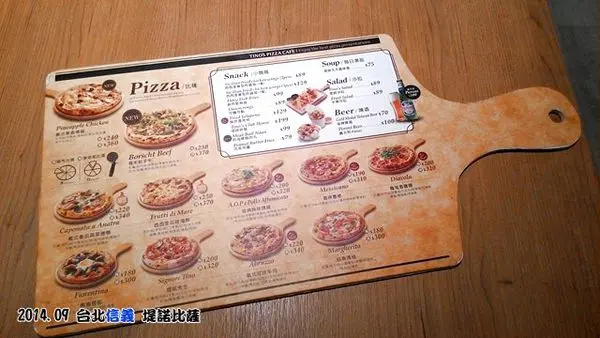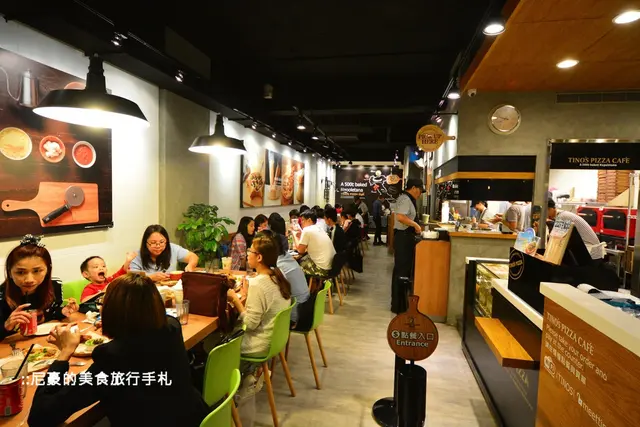 靠近101世貿附近的莊敬路上開了一家新的披薩屋-堤諾比薩之前有經過幾次剛好趁這次機會體驗一下餐廳採取先在櫃台點餐結帳之後服務生就會幫忙把餐點送到你桌上服務生人數相當多送餐時也都會介紹一下吃法 態度親切不過像是餐具水都是自取整個餐廳環境相當乾淨明亮!用餐起來感覺也頗舒適牆面上放滿各種披薩製作流程的圖片和器具可以好好欣賞一下還有一長排的座位區..這次體驗有限制6點前要點完餐所以匆匆在6點前趕到客人還沒有太多不過到了7點多就大客滿了菜單是精裝版本的很有厚度和硬度的質感做成像是餐盤的感覺主賣商品就是披薩和佛卡夏比較特別的是還有甜點披薩~堤諾拼盤199元炸雞翅 味道很香 除了有烤過的香氣外還有獨特的風味調味鹹香還不錯!炸薯條和炸魚條都稍微有些過油而且有淡淡的油耗味有些可惜炸魚的肉質很嫩搭配塔塔醬一起吃比較不會過膩義式番茄蔬菜烤鴨 220元他的餅皮是軟Q偏有彈性的類型餡料很豐富有頗大塊的鴨肉.花椰菜.九層塔.起士...整體味道是還ok只是鴨肉的部分比較沒有融入感通常是一口鴨肉一口披薩餅皮吃到後來還是覺得有些乾TW珍奶甜星 160元好特別的甜點~~而且是個視覺饗宴!披薩餅皮上面舖上像是卡士達醬.奶茶醬.還有各種水果跟珍珠粉圓不過也是有些偏甜了~~餅皮部分最外層沒有餡料的部分吃起來就會覺得有些乾...重點是..雖然看起來份量不多不過吃到後面還滿飽的....Espresso冰沙 95元裡面還放入幾顆完整的咖啡豆裝飾咖啡喝起來還滿香甜的也剛剛好呈現出咖啡淡淡的苦味凱若梅爾卡布 90元表面是焦糖奶泡因為等到比較涼了再喝表面焦糖都結塊了..味道上苦味比較明顯~~可將焦糖奶泡充分攪拌後再喝堤諾比薩的生意相當不錯晚上7點後客人絡繹不絕餐點口味也頗有特色和創新感!!…查看更多