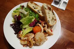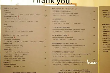 大嗑放口袋裡很久了,這次臨時起意前一天才訂位午餐,到店後裝潢氛圍頗為樸實輕鬆,內外場皆是青年,較有活力,Menu則在FB大致看過,價位平實。 大嗑可單點也能配成套餐,是常見的模式,幾款精釀啤酒都是可以套餐加價選擇,挑了英式蜂蜜啤酒Honey Dew,入口清甜微苦,尾韻有蜜香,順口不膩。開胃菜點了雞肝醬與黑糖桂圓麵包,盤中央是貝比生菜、無花果,雞肝醬細緻滑膩,氣味也好,抹在微甜的麵包上很搭,一片下肚竟有點意猶未盡。下酒小點要了雞翅(以支計)和碳烤伊比利豬肉串,中翅的部份去骨塞入蒜味卡士達醬,外頭裹了一層脆粉、油味不濁,豬肉串熟度控制得不錯,搭配炸豬皮(稍微粗糙)、拌上香菜的玉米莎莎、紅椒粉,這兩樣下酒小點很實吃。主食中的牛排有老饕和肋眼心的選擇,以標示的Prime級與其份量,價位意外有點低(七八百),點了肋眼心試試...,醬汁的調味不錯,烤白菜也好吃,牛排肉質就較為一般,少了些豐潤口感以及原預期的濃郁,不需期待太多就ok吧。另一道是馬賽風味魚湯,食材有紅魽(煎得熟度有點過)、草蝦,除蛤蜊特別感到多汁鮮美之外,整體口味是平淡了點,沒有太多印象。飯後招待了小點心,抹茶口味瑪德蓮,微溫、外層有烤製的酥香,質感鬆綿不乾,淡淡抹茶味,這天另外招待了檸檬塔(Menu上沒有),是無塔皮而以撒上的脆脆奶酥粉取代了口感,卡士達餡則清香酸爽,也是好吃。兩個人2K多的消費,以我不算小的食量也吃得蠻飽,以這價位的餐食表現還蠻值得再上門,看店內有幾張單人座,獨自輕鬆來吃應該也不錯。Read More