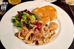 第一次看到這家『大嗑西式餐館Ducky Restaurant』時先是被它的名字吸引,看了菜色之後就覺得還蠻有興趣的,而它剛好在最近活動頻繁的濟南路上。 『大嗑西式餐館Ducky Restaurant』裝潢很簡單,走的是簡約鄉村風,簡單地運用一些木造的裝飾點綴氣氛。 沒有過多的裝潢所以空間看起來不會過於擁擠,有時候簡單也是一種風格。 開放式的廚房,在餐廳用餐能看到廚師們忙碌的身影其實還蠻有意思的。 (未成年請勿飲酒)老爺點了一杯Gin Tonic,他還蠻喜歡這類調酒的味道。 amy點了一杯水蜜桃茶,還蠻好喝的。 豌豆濃湯豌豆的香氣很濃郁,很好喝的一個濃湯。 普羅旺斯風味碳烤綜合海鮮沙拉佐佛卡夏麵包海鮮帶著淡淡的碳烤香很是誘人,光味道就很棒,海鮮本身品質也很不錯,是相當美味又討喜的一道沙拉。 白酒燉牛肉一般是紅酒,但這裡用的是白酒,牛肉軟爛可口,味道做得很好,不像一般紅酒燉牛肉那般膩口,吃起來很清爽,還蠻好吃的。 碳烤牛排牛排的份量不算小,雖然等級不是非常好,但以它的價格來說是很實惠且誠意十足的,值得一提的是一旁的薯條外酥內軟,很好吃。 焦糖布丁布丁口感很滑順,也不錯吃。整理來說『大嗑西式餐館Ducky Restaurant』算是一家還蠻經濟實惠的餐廳,價位不高,料理有一定的水準,是如果有機會到那附近不知道吃什麼時可以考慮的餐廳。大嗑西式餐館Ducky Restaurant台北市中正區濟南路二段18號-3 02﹣2394 8810查看更多