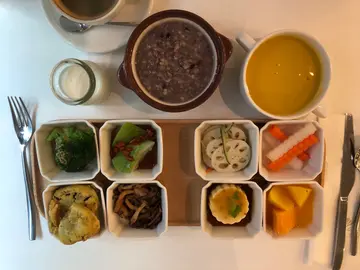 各位格友日安~春天到了,跟著 流星雨 一起來北投知名的 大地酒店,嚐嚐由喜歡廳的葉銘富主廚精心設計,充滿春天色彩的「矜貴美饌 白蘆筍饗宴」大地酒店位於台北市北投區奇岩路一號。倚大屯山系的丹鳳山麓而建,外觀純白、簡約,帶有歐式渡假風情。命名源自希臘大地女神,象徵如大地女神一般的溫柔、豐饒、風韻、光彩等。地點位於西餐廳-喜歡廳,餐廳名字以流線英文結合跳舞女孩圖案,別出心裁。餐廳設計維持一貫的優雅簡約風格,二側的座位皆有美景可賞,內側可居高臨下欣賞富有文藝氣息的藏書閣,外側則是明亮的庭園景色。餐廳採用潔白桌巾、餐盤,搭配銀亮的金屬刀叉,含蓄而低調。貼心地提供置物籃,方便客人放置提包衣物等。柳橙汁新鮮現打,酸甜可口,充滿果粒纖維,很真材實料。 餐前麵包有二種口味,熱呼呼的,香酥、軟而有嚼勁,好吃。可搭配橄欖油及紅酒醋。開胃小點:使用白蘆筍及綠蘆筍,刨成纖長薄片,搭配香鹹有味的嫣紅火腿,襯托出蘆筍本身的清甜原味。裝在透明的玻璃杯中經冰鎮,曲線圓滑而優美,小巧花瓣、嫩芽透出繽紛春意,清新爽口。冷前菜:主廚醃製鮭魚塔塔襯白蘆筍和蘆筍凍要價不菲的白蘆筍足足有四段之多,色澤嫩白,點綴上深黑鯡魚卵,晶瑩剔透的橘色鮭魚塔塔生魚丁佐上粉嫩嫩的綠蘆筍凍.紫紅花瓣、鮮綠香草葉,點上數顆紅酒醋及類分子料理手法製成的荷蘭醬。色彩繽紛,春意滿盤,賣相好,吃起來的味道更好,白蘆筍口感極為鮮脆細緻,清甜又多汁,搭配鮮美魚子滿口生香。鮭魚鮮度佳,稍經醃製,輕微的鹹味襯托出其甘美肥潤,蘆筍奶凍質地軟而滑嫩,以綠蘆筍汁加入奶油,溫和、細緻,香濃又不失爽口。湯品:香茅風味菌菇龍蝦湯佐白蘆筍泡泡深黃色的龍蝦湯上桌時香氣撲鼻,湯頭加入鮮奶油、白蘭地,灑上粉紅椒及羅勒油提味,濃郁帶有稠度,鮮味十足,幾近於蝦膏,滋味微苦,複雜有深度。搭配清甜的白蘆筍泡泡混著喝,滋味更為溫潤、輕盈,富有層次感,風味絕佳。食材選用碩大、雪白的磨菇切片及多塊肥美的龍蝦肉,用料很大方。蝦肉紅白相間,紮實彈牙又鮮甜,可說是我喝過龍蝦湯中最為真材實料,好吃又好喝。我個人超愛這一道,一點湯汁都不想留下,搭配麵包沾著吃光光。熱前菜:碳烤野生鵪鶉襯水煎白蘆筍及紅酒燉飯盤子特別加熱過,維持燉飯一定的熱度及美味。精心挑選中南部的鵪鶉肉,肉質柔軟有彈性,有種難以言喻的鮮味,好吃。白蘆筍煎過,沒那麼脆,稍軟而香氣更盛,吃來更為溼潤甘甜。燉飯用的是義大利米,加上香濃的雞汁燉煮,約八分熟,口感濃郁黏稠,微帶嚼勁,可依客人喜好調整熟度。檸檬雪酪吃完二道前菜,上主菜前,先來杯檸檬雪酪清口。雖說是雪酪,卻做得很細緻綿密,有點近乎於冰淇淋的質地了。主餐為牛排、海鮮二擇一美國頂級老饕牛排老饕牛排就是高級美國肋眼(Ribeye)的上蓋肉,可說是精華部位。這道牛排的作法很有趣,受限於廚房空間有限,沒有大型的烤爐,主廚發揮巧思,以煎炸封住肉汁,再慢火烘烤的方式處理。外層焦香而內裡嫩紅不見血,火候掌控得恰到好處。搭配鮮綠的綠蘆筍及少見的台灣紫蘿蔔,再點綴嫩綠豆仁及花瓣,好看也好吃。牛排肉質細緻而軟嫩,滋味濃郁,肉汁豐美,嚐得到美牛特有的肥潤甘味。下方的馬鈴薯泥也好好吃,細滑綿密,微甜充滿奶香。可搭配黑塩、海塩塩之花,玫瑰塩。香煎深海圓鱈魚配大明蝦這道主菜上桌時,香氣逼人,強烈的海洋鮮香不斷飄散,原來散在一旁、看似不起眼的深黃粉屑,是由台灣東港的烏魚子烘烤磨製而成。明蝦來自澎湖,已去殼,方便食用,飽滿、肥碩,蝦肉充滿彈性。鱈魚煎得金黃酥香,肉質雪白而細嫩肥美,幾近入口即化。醬汁為佐青蒜鯷魚醬汁,香鮮味濃,個人以為醬汁味道稍重,要是淋在一旁,由食客自行視口味沾取,更能品嚐出鱈魚及明蝦的鮮美原味。配菜有綠蘆筍及茴香頭刨片,口感爽脆。餐後飲料可選擇咖啡或茶類。咖啡香醇順口不酸澀,紅茶清香怡人。 甜點:主廚特製白蘆筍甜點。白蘆筍汁冰沙及白蘆筍抹茶奶酪,冰沙吃來冰冰涼涼,清新爽口,加上蘇維翁白酒増添果酸香氣及風味。白蘆筍抹茶奶酪帶有日式風情,蘆筍的清甜搭配抹茶清香,吃來綿細而滑順。這二道甜點甜度偏低,是屬於大人才懂的濃郁味道。查看更多