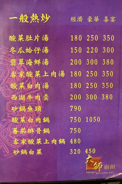 大師廚館 (台北) 網址: https://s.openrice.com/cHRSm026rK100 地址: 台北松山區民生東路五段258號 電話: +886 +886287878820