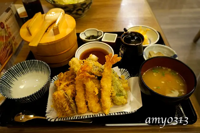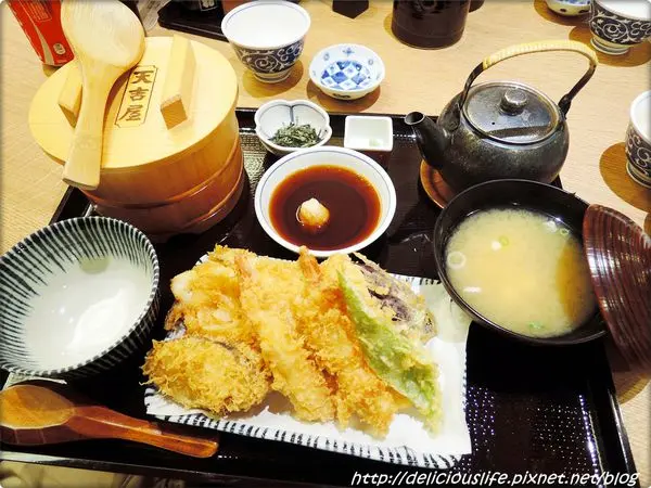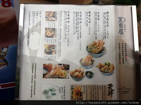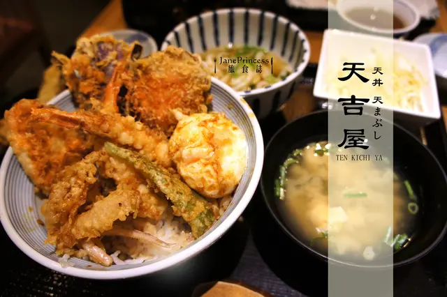 「天吉屋」明明在新竹巨城就有分店但我第一次吃到它竟然在台北原因是我台北的朋友實在太愛了所以這回我們去台北玩即使她已經吃過很多次都依然推薦我們這家日式丼飯店這天吃的「天吉屋」是忠孝店位於北市美食一級戰區的216巷朋友雖然事先訂了位不過用餐時間客人滿座加上店家時間安排上好像不太順暢所以還在門口等了一會兒日式炸物店當然要來個日式風格的招牌下方寫著店家的營業時間既然還不能入座就先在門口研究一下菜單不需要思考太久的時間因為主餐只有推出5種所有餐點都會附上"開胃沙拉"但其實就是加了醬的高麗菜絲"牛蒡茶"味道香甜是無限暢飲兩樣小菜直接放在桌上自由夾取因為對漬物沒有太大興趣就只各吃了一口嘗嘗味道牆上的手繪餐點畫得還不錯餐點本身價位不算低且需另收10%服務費唷天吉丼 NT.300滿滿的炸物好豐盛讓我都快看不到碗裡還有飯的存在內容物有海老三尾/白身魚/厚身花枝茄子/青椒/地瓜/溫泉蛋厚身花枝吃起來飽嘴Q彈半熟的溫泉蛋是用炸的...拌飯吃超濃滑如果不敢吃半熟也可要求全熟蛋喔小配角之一的味噌湯天幕御食 NT.400金黃色的炸衣讓炸物看起來美味極了這一盤裡有海老三尾/白身魚/真鯛花枝洋蔥酥/茄子/青椒/地瓜米飯是用飯桶直接上桌想說份量會不會很驚人其實還好啦...薄薄一層朋友她食量不大都還可以續桶說"天幕御食"有三種創意吃法第一吃:單獨吃"天婦羅"的脆口第二吃:將特製"天丼醬汁"加至越光米飯上第三吃:加入秘製高湯享用"天茶泡飯"天吉雙品 NT.350(小天吉丼+特製烏龍麵)小天吉丼的炸物和天吉丼幾乎一樣只不過是少了一隻炸蝦天吉屋好吃的關鍵除了各式天婦羅外我覺得"醬汁"是最大的功臣雙品就是多一碗讚崎烏龍麵不過麵條和湯汁都只有中等水平所以下次大概只會再點飯類產品目前天吉屋只有三家分店兩家在台北一個在新竹BIG CITY的7樓如果它價位再平民一點或許我會常去巨城吃吧✰ 天吉屋地址:台北市忠孝東路四段216巷27弄10號1F電話:02-2721-3328時間:11:30~14:30(假日至15:30) 17:30~21:30…查看更多
