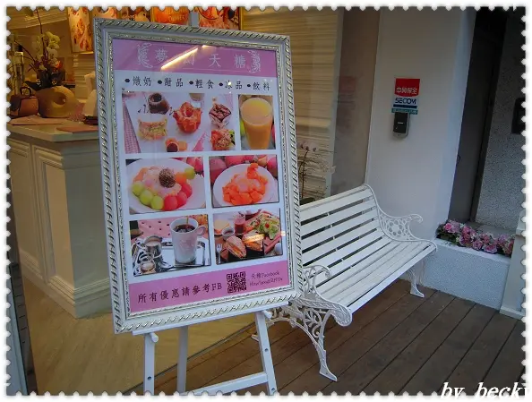 [食記]Oicky 貪吃鬼 粉紫+粉紅+低卡甜品=女孩們尖叫的夢幻店-天糖時尚燉奶甜品 本來今天的行程是,抓住夏天的尾巴要去八仙玩水的 無奈計畫改不上變化,秋老虎發威,看起來身高體壯的Robin生生竟然給我感冒!!!! (虧我昨晚還研究一下現在八仙有甚麼新設施)那只好繼續貪吃下吃(逼不得已),拿出我的深口袋名單,吃點心去囉~~~~今天去的是在中山區晴光市場附近的天堂時尚燉奶甜品主要是卡在捷運民權西路9號出口跟中山國小1號出口附近我個人是推薦回程的時候可以邊散步邊走到花博晃晃再去圓山站搭車店的外觀真的是超級女孩的店的!!!! 整片的落地玻璃,加上粉紅色的遮雨棚~~很有法式小店的感覺 店門口長這樣~~~(請自動忽略玻璃上反射的我@@)是不是好可愛!!!還有不少民眾,經過時特別停下偷拍幾張的 店裡設計的部分~是女孩代表粉紫+粉紅的布置 沙發區位置有夠素洗的!!!! 店裡有單點也有套餐主角燉奶的部分是單點另外鹹食的話有套餐,飲品部分可以抵30元補差額換其他的燉奶香雞帕尼尼 $270(含冰咖啡或冰奶茶及沙拉)沙拉配的醬我猜測是千島醬(?) 酸酸甜甜的超好吃!!!!!其實帕尼尼是誰我還不太了解不過名字很法式倒是真的口感不會太硬,但是上面又有脆脆的火候 調的好阿師傅!內料香雞本人味道大為驚人啊!!!!!!!雞肉本身不會太乾,重點是有用特別的醬料醃製味道之好()連不愛女生的店的Robin都說:這是我在女生的店吃過最好吃的雞肉!!!(是有攝影機在拍嗎? 感麻講出像是食神的台詞一般)招牌燉奶-幸福天堂 $180呈現的外觀真的很美滋味當然也是一層又一層的享受其實這一款是菜單上沒有的隱藏甜點,畢竟我本人是有利用一些非法力量的(亂說一通)這款燉奶集聚所有口味之美豐富的當季水果西瓜哈密瓜芒果以及穀物類的朋友麥片南瓜子還有女性的好東西蔓越莓乾全部都是對身體無負擔的配料無知的我一直以為燉奶就是奶烙~想說只是香港發音而已 (大誤啊!!)兩者口感完全不一樣像奶烙吃起來就比較死甜,可是燉奶不會喔~~口感相當滑嫩而且不會甜膩是用天然成分鮮奶+蛋白燉煮而成的然後重點是又低卡!!(大心) 才80多卡而已也!!!!!摩卡燉奶咖啡冰沙 $160我真的是快要瘋了!!!這個也太犯規 超好喝的!!!!!!!!!!!!!!!!!!!上層是 滑嫩的燉奶 淋上 百搭巧克力醬下面是極具口感 喀滋 喀滋 的濃郁摩卡冰沙吸管一搓下去 吸一口 , 先喝到奶香甜味的 燉奶 再來是 些許苦澀的摩卡冰沙兩者味覺混合在一起 真的很好喝(再度)普羅旺斯水果茶 $150年少時期流連在東區後巷茶街時.爾偶會喝個水果茶大多都是太甜 加上 沒有什麼水果香味的感覺今天在天糖跟普羅旺斯相見 才對她就此改觀茶本身有股花香~感覺是玫瑰香搭配豐富的水果們,除了常出現的蘋果 還有金桔 百香果 柚子 莓果等坐在窗邊的沙發位置 還能看到隔壁的教堂呢!CP值 4顆星再度光顧意願 5顆星女孩的夢幻程度 5顆星營業時間 : 11:00 - 22:00電話 : (02)2597-3577…查看更多