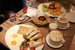 開幕不久的『House Bistro 好適廚坊』自家研發的經典早午餐和手工漢堡就讓附近的上班族為之瘋狂 適逢聖誕節,店門口裝添了許多聖誕裝飾讓人有過節的氣氛 有著歐式的簡潔俐落又帶著日式樸質的風格看似尋常卻有股獨特的魅力一進門就喜歡上這裡的裝潢 還好訂了11:30的位子,才能拍到幾張淨空照不一會兒,已經是高朋滿座了服務人員帶位後細心地介紹餐點,自然不客套雖然不是熟客但親切的招呼聲讓人備感溫馨另外店家還告訴我好適所有的醬料和食材都是自製嚴選的所以吃起來格外安心沒負擔翻開厚厚的MENU餐點從美式早午餐 三明治 漢堡 燉飯 義大利麵和甜點應有盡有簡單的放上幾張詳細MENU請點*** 店家不收服務費,提供wifi選好餐點就到櫃檯點餐 而餐具 調味品和水杯就放在櫃檯旁的櫥櫃上方便來客自取 架上的裝飾品 法式吐司經早午餐搭配兩顆蛋(炒蛋 /太陽蛋 /水波蛋/水煮蛋)麵包任選(鮮奶/全麥吐司/英式馬芬)薯類(薯餅/薯泥/薯條/薯塊)菇肉類(培根/火腿/香腸/杏鮑菇/綜合菇/5選2)想吃哪種就配什麼 一般炸薯條吃多了,就決定吃清爽一點的薯泥頗具造型的薯泥有股自然的好味道鬆軟香甜的法式吐司撒上些許糖霜不用淋上蜂蜜,單吃就很好吃了蜂蜜醬滑嫩的炒蛋讓喬巴也張開了嘴了(哇嗚~) 一向就很喜歡菇類的我覺得綜合菇賀呷有機豆漿(味道稍淡些) 表皮炸得酥脆的起司條一拉絲可以拉的好長拉絲秀,好像每個吃起司條都會來上一段 經典牛肉堡以手工捏打的牛肉烤至七分熟,搭配培根 番茄 生菜和起司 店家告知我旁邊的生菜是要夾在漢堡裏頭吃的不是沙拉喔但我不習慣疊高高,就一塊塊慢慢分食漢堡肉 沒有什麼特殊的醬料自然的呈現牛肉原味一絲絲的洋芋薯籤製成的薯餅外皮煎的焦脆,內部鬆軟(如果不加調味品可能味道稍淡些)(個人偏好有點帶鹹味的薯餅,而不用再加任何調味料)喝咖啡是每日必備的功課點了1拿鐵和1薄荷拿鐵咖啡還算順口而薄荷拿鐵略帶點甜味(沒涼涼的感覺)餐後不管怎樣也得來上一甜點(什麼卡路里等吃完再說吧)店家自製布朗尼甜點搭上香濃的冰淇淋一口一口相互交融,契合極了 滿滿的一桌份量讓我們飽足沒壓力和舒適的空間讓人就想帶著筆電在此窩一下午以上是我的用餐資訊在此提供您參考 …查看更多