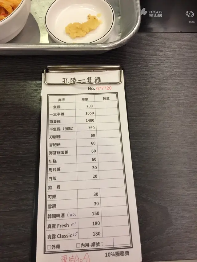 對於韓國料理的印象都是紅通通、辣滋滋其實我也才知道韓國料理不止那樣!!來台後一直很難訂位的孔陵一隻雞現在好像、似乎、大概有比較好訂一點點拖朋友的福 他訂到了位子 在此進行我們每月的國事會議!!(最好有那麼正經....笑屎人!!)現在比之前好訂一些想嚐鮮的朋友可以出動了!!菜單就匠子 很簡單吧!!基本上如果四個人來吃的話就是1~1.5隻雞然後其它的配料通通來一份就對了!!餐具在桌子的抽屜內桌上現在看到的這些都是可以再續的上方多給了沾醬用的辣椒、蒜泥、麻油胡椒其中麻油胡椒沾雞肉好好吃~超香的!!!其中這盤辣泡菜很好吃 是沒有發酵很久的那種比較脆也比較清爽 酸度不那麼高 我們續了好多次!!!我們的一隻雞上桌了原本湯裡就有一點杏鮑菇、大蔥、年糕、馬鈴薯但真的只有一點點 建議要再另外加點一份比較夠吃!!而且吃裡面的料配湯真的是好鮮美哦!!!雞本人不是很大隻 所以吃不夠的話 建議可以再加點半隻服務人員會來幫忙進行專業分解的動作!!! 加點的年糕 又Q又香超好吃!!煮到雞湯裡 真是人間美味~PS.我超愛年糕!!!杏鮑菇吸飽雞湯之鮮美滋味 可以想見馬鈴薯必點 它會讓湯變得更濃郁好喝~一開始就丟下去煮 最後再吃它馬鈴薯會變得很綿密鬆軟雞湯也會因此多了一個馬鈴薯的香跟沙沙的口感今晚所有吃的東西就是這一鍋簡單又美味的要命~湯好好喝~~雞肉一吃就是紮實的口感 不是軟軟的肉雞這是加點的刀削麵 店員直接幫我們下鍋了 撈起來給大家瞧瞧我們都不懂為什麼這叫刀削麵?!跟我們印象中那種北方刀削麵不一樣~我覺得....就是比白麵再Q跟再結實一點~湯煮到最後留一點下來不要喝完~加點一份海苔雞蛋粥吧~米粒吸飽了鮮美的雞湯 真的是極品!!這一餐吃下來一個人才3百多元哦!如果最後沒有再加點半隻雞 一個人大概2百多而已ㄋㄟ是不是好便宜~好棒棒!!!而且這雞湯怎麼可以好喝成匠子啊~~難怪平日晚上也是人潮滿滿~感謝我們的豪哥~每次餐廳都由他來訂位~而且他超厲害 什麼難訂的餐廳他都能搞訂!!讓我們這3位女生 只要準時出席 安心吃飯就可以了!! (好輕鬆)目前這位質男單身中 我們都好想把他銷出去哦~~想看更多美食記錄請見Cindy的彩色筆記本 http://beautychu060.pixnet.net/blog…查看更多